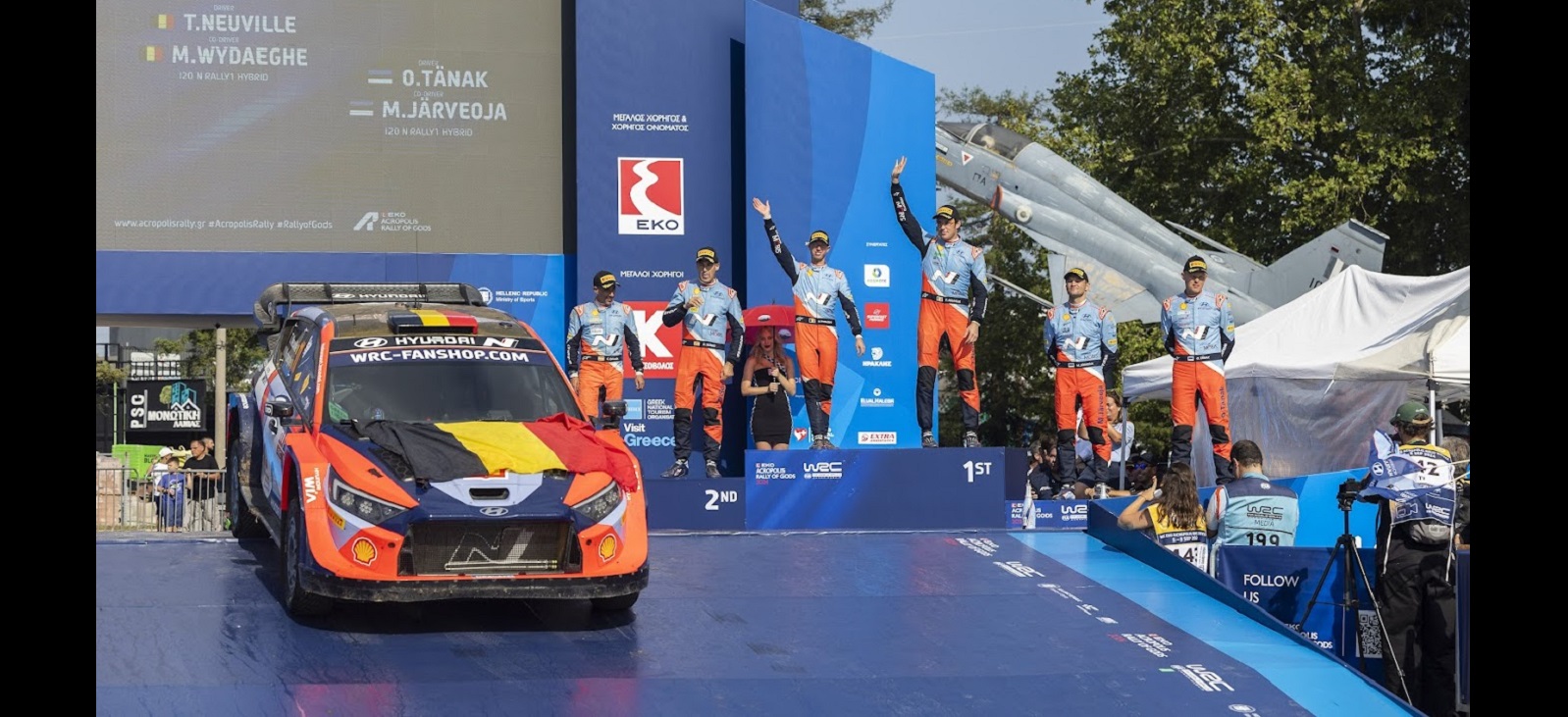 Mε τα Toyota GR Yaris Rally1 των Elfyn Evans και Takamoto Katsuta και το Ford Puma Rally1 του Adrien Fourmaux μακριά από την κορυφή σήμερα, τον Thierry Neuville στο βάθρο πλαισίωσαν οι Dani Sordo και Ott Tanak, σφραγίζοντας το θρίαμβο της Hyundai, που αύξησε τη διαφορά της από την Toyota σε 35 βαθμούς στο Πρωτάθλημα Κατασκευαστών.