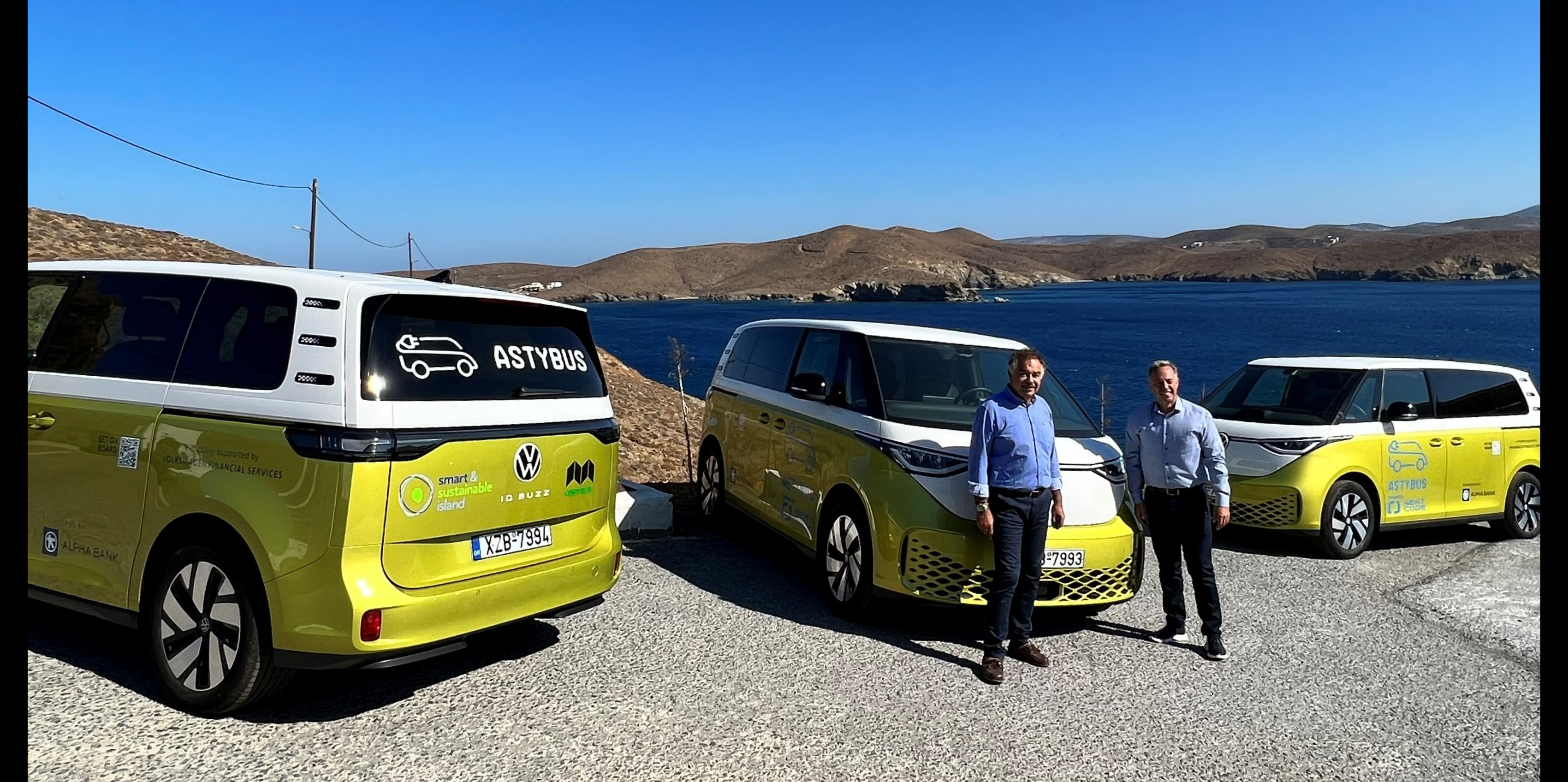 Τα τρία εμβληματικά νέα ηλεκτρικά οχήματα της Volkswagen, που είναι διαθέσιμα για χρήση από το κοινό για πρώτη φορά στην Ελλάδα, εντάσσονται στις υπηρεσίες shuttle service «ASTYBUS» που αποτελούν μέρος του καινοτόμου οικοσυστήματος έξυπνης και οικολογικής μετακίνησης στο νησί της Αστυπάλαιας, «astyMOVE». Η μοναδική για τα ελληνικά δεδομένα αυτή υπηρεσία αστικής κατά παραγγελίας μετακίνησης θα είναι διαθέσιμη καθ΄ όλη την διάρκεια του έτους, δίνοντας τη δυνατότητα στους κατοίκους και τους επισκέπτες του νησιού να μετακινηθούν άνετα και εύκολα προς όλους τους δημοφιλείς προορισμούς της Αστυπάλαιας.