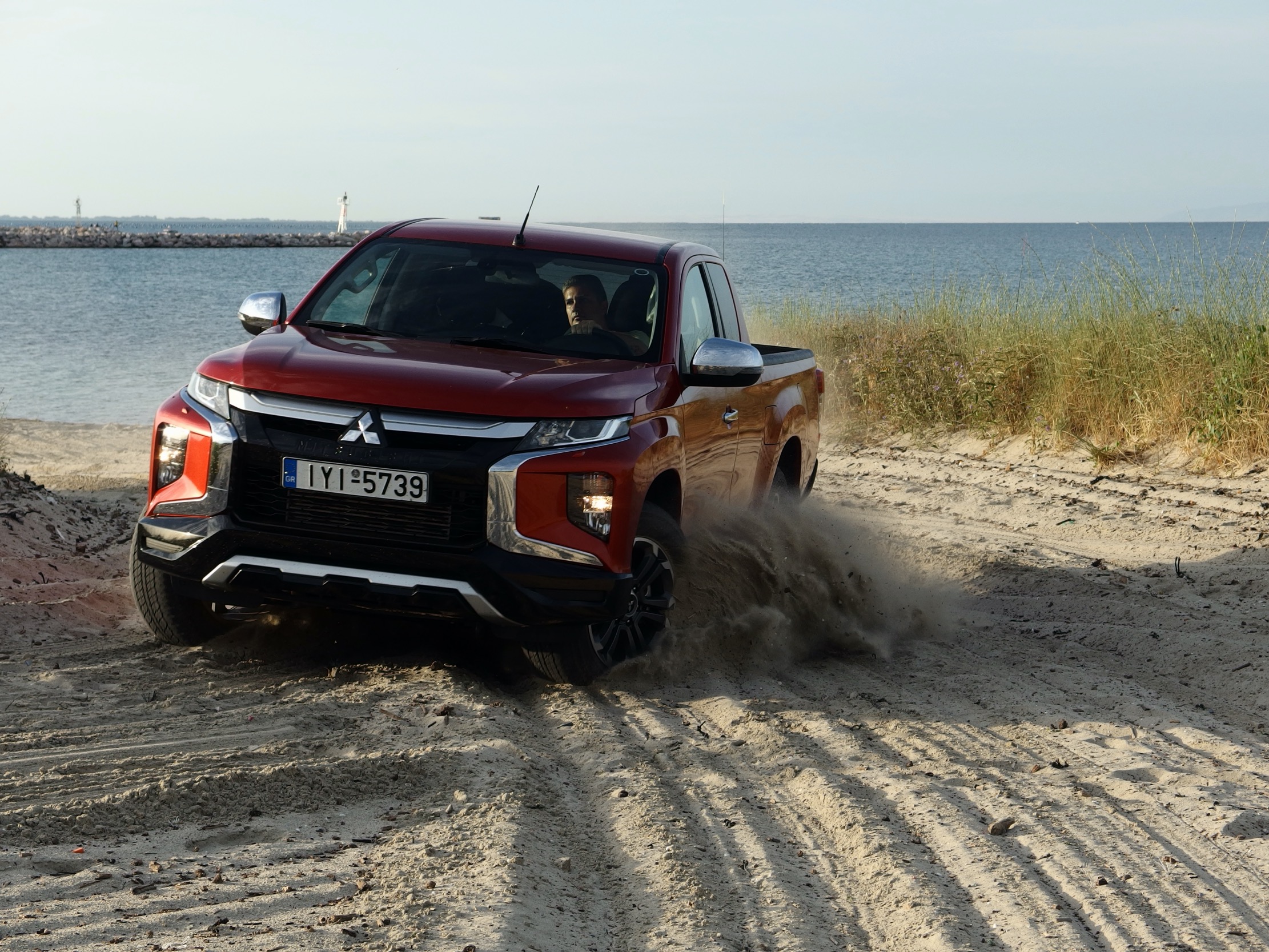 Πέρα από αυτά υπάρχουν και ηλεκτρονικές ρυθμίσεις που βοηθούν την εκτός δρόμου πρόσφυση του L200 ακόμη περισσότερο, με τις λειτουργίες off-road. Επιλέγουμε μεταξύ των ρυθμίσεων Gravel (χαλίκι), Mud/snow (λάσπη/χιόνι), Sand (άμμος) και Rock* (πέτρα).