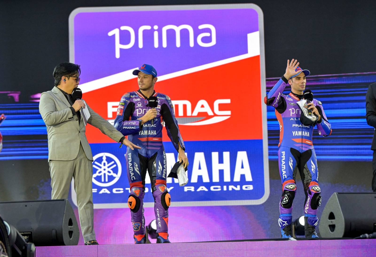 Καθώς η αγωνία ανέβαινε, η προσοχή στράφηκε το απόγευμα στον χώρο One Bangkok, έναν από τους πιο νέους και δυναμικούς χώρους της πρωτεύουσας. Εδώ, οι αναβάτες ενθουσίασαν τους θαυμαστές φτάνοντας πάνω στη σκηνή με τις μοτοσυκλέτες τους. Οι αναβάτες της Prima Pramac Yamaha MotoGP, Jack Miller και Miguel Oliveira, έκαναν μια δραματική είσοδο, οδηγώντας προς το τέλος της παρουσίασης σε αναγνώριση της εντυπωσιακής 2ης θέσης της ομάδας στο Παγκόσμιο Πρωτάθλημα Ομάδων MotoGP του 2024.