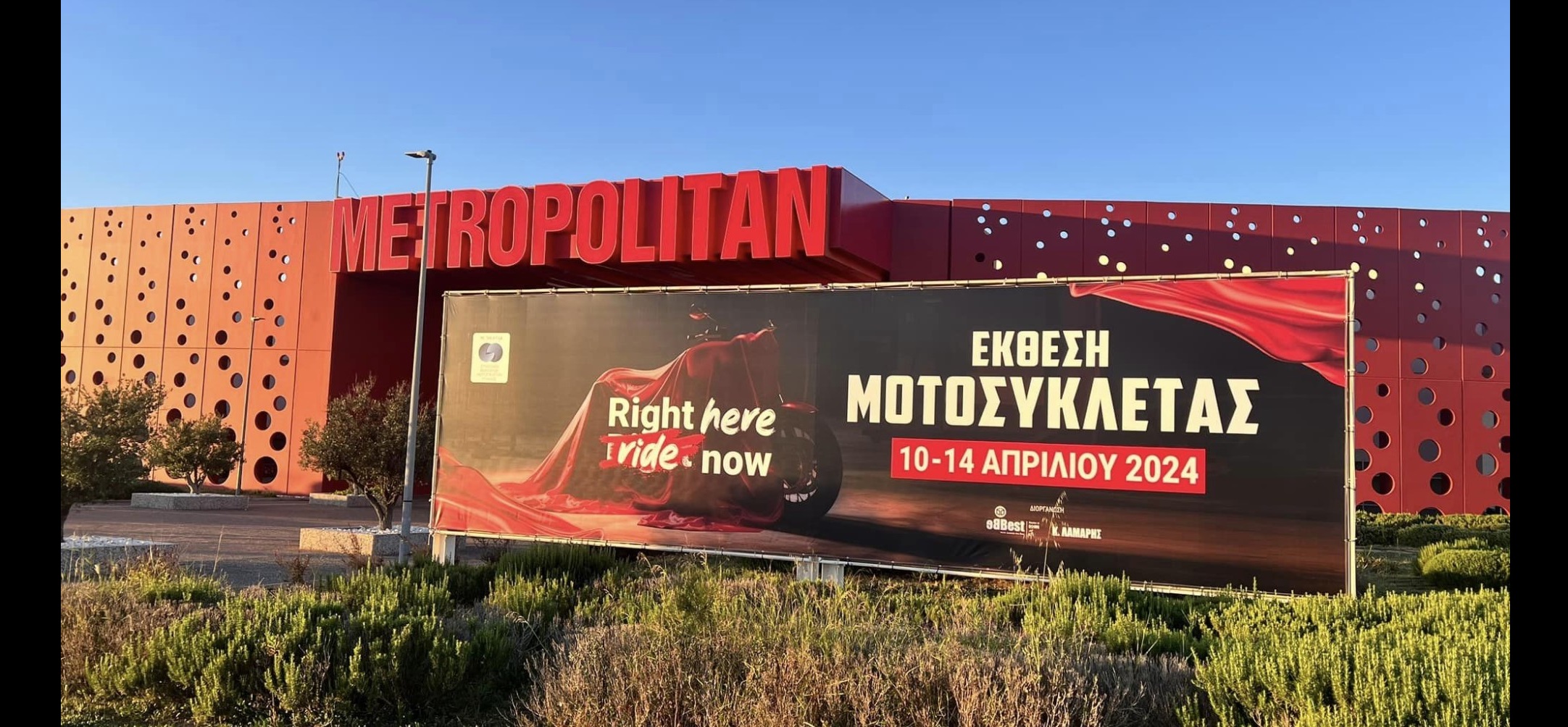 Η Έκθεση Μοτοσυκλέτας 2024 ξεκίνησε την Τετάρτη 10 Απριλίου στο εκθεσιακό κέντρο METROPOLITAN Expo, παράλληλα με το 1ο Συνέδριο «Sustainable Ride» και θα παραμείνει ανοικτή για το κοινό έως και την Κυριακή 14 Απριλίου 2024.