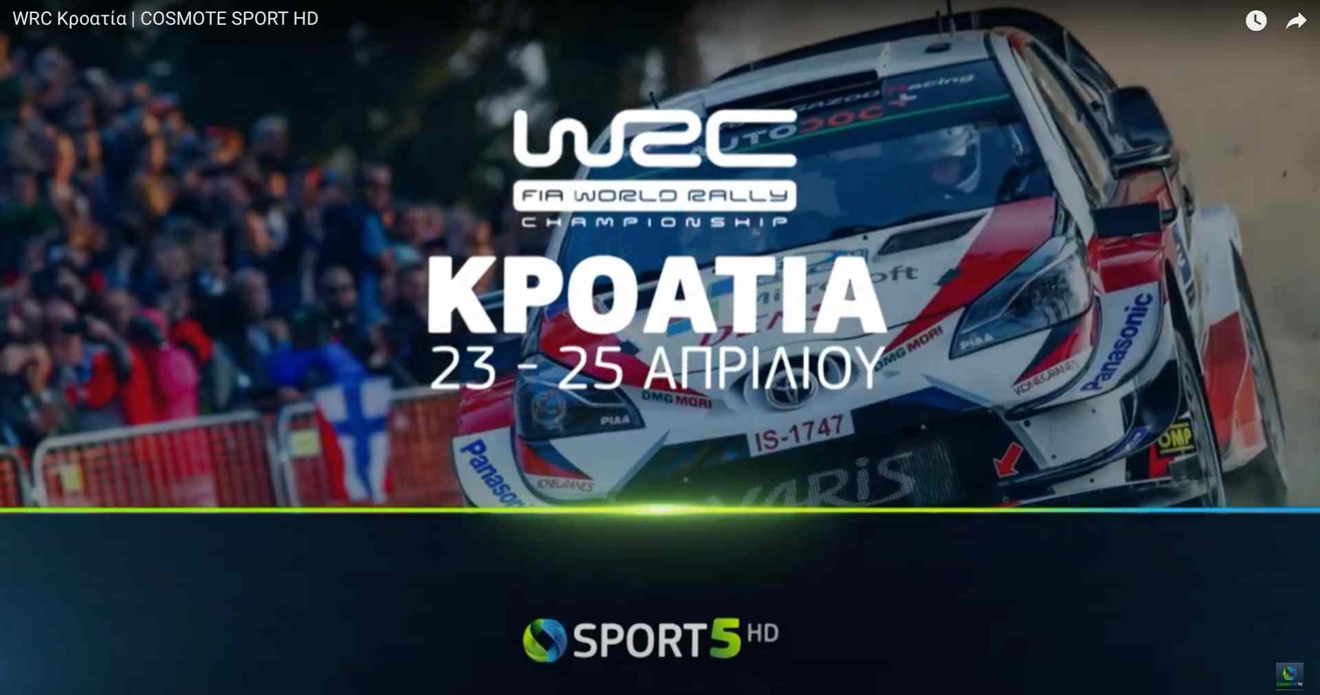 Η αδρεναλίνη ανεβαίνει στις ασφάλτους της Κροατίας, καθώς εκεί διεξάγεται ο τρίτος αγώνας του φετινού προγράμματος του WRC. Οι φίλοι του μηχανοκίνητου αθλητισμού θα μεταφερθούν στα περίχωρα του Ζάγκρεμπ μέσω του COSMOTE SPORT 5HD για να παρακολουθήσουν την τριήμερη δράση (23 – 25/4), που περιλαμβάνει 10 ειδικές διαδρομές. Πρώτη σύνδεση των τηλεθεατών με την Κροατία γίνεται την Παρασκευή 23/4 στις 09.35, ενώ η τελευταία την Κυριακή 25/4 στις 14.00.