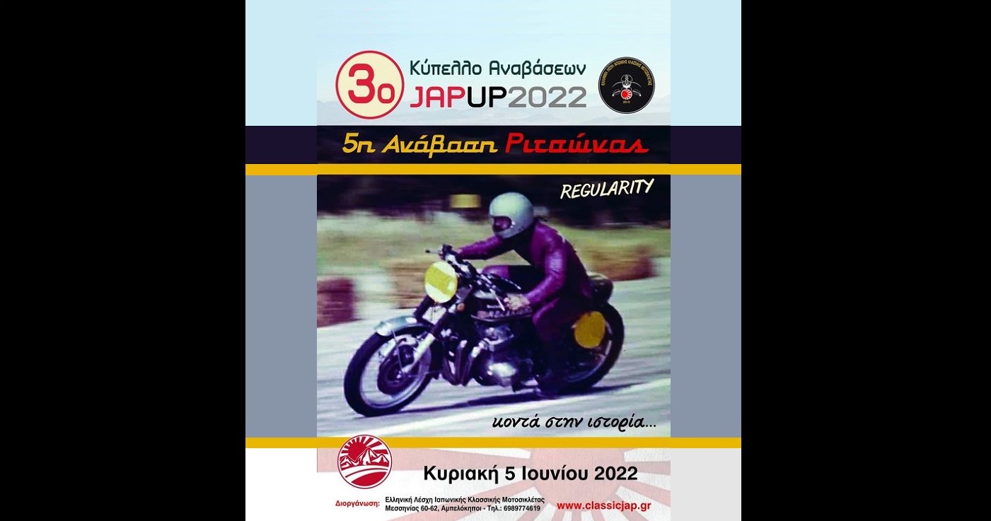 H Ελληνική Λέσχη Ιαπωνικής Κλασσικής Μοτοσικλέτας την Κυριακή 5 Ιουνίου 2022 διοργανωνει την 5η Ανάβαση Ριτσώνας στο πλαίσιο του 3ου Κυπέλλου Αναβάσεων JAP UP Regularity