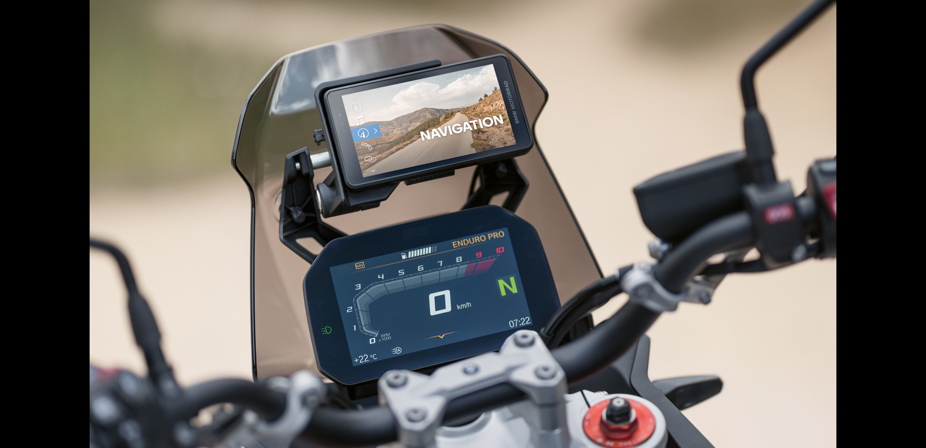 Η πολύ φωτεινή οθόνη αφής 5,5 ιντσών είναι εξαιρετικά ευανάγνωστη, ακόμα και στην περίπτωση που η άμεση ηλιακή ακτινοβολία προσπίπτει στην επιφάνειά της. Το BMW Motorrad ConnectedRide Navigator συνδυάζεται άψογα με τις οθόνες της μοτοσικλέτας και με ολόκληρο τον κόσμο εμπειρίας της BMW Motorrad. Η γραφική απεικόνιση και η αλληλεπίδραση με τον χρήστη εναρμονίζονται τέλεια και ενσωματώνονται απρόσκοπτα στη λειτουργική φιλοσοφία της οθόνης TFT και του BMW Motorrad ConnectedRide Navigator. Οι οθόνες επίσης συντονίζονται μεταξύ τους όσον αφορά την ένταση του φωτός, την αντανάκλαση και την αντιανακλαστική επίστρωση. Το Navigator φορτίζεται μέσω του ενσωματωμένου δικτύου της BMW. Εναλλακτικά, μπορεί επίσης να φορτιστεί σε ελάχιστο χρόνο μέσω του παρεχόμενου καλωδίου USB-C με ρεύμα φόρτισης έως και 2,4 A.