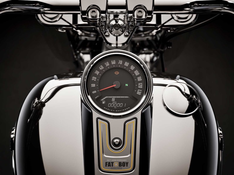 Η μοτοσυκλέτα αποπνέει μια παλιάς κοπής γοητεία, που ενισχύεται από λεπτομέρειες όπως ο μαύρος δερμάτινος ιμάντας στο ρεζερβουάρ με πλεκτές άκρες, καθώς και η διακοσμητική ποδιά σέλας με κορδόνια και κρόσσια. Το χαρακτηριστικό φτερωτό γραφικό του αρχικού Fat Boy έχει αναδημιουργηθεί ως τρισδιάστατο σήμα στο ρεζερβουάρ. Το σήμα της συλλογής Icons είναι τοποθετημένο στον οπίσθιο λασπωτήρα, ενώ ο μοναδικός αύξων αριθμός κάθε μοτοσυκλέτας είναι χαραγμένος σε ένα αναμνηστικό ένθετο στο επάνω μέρος του ρεζερβουάρ.