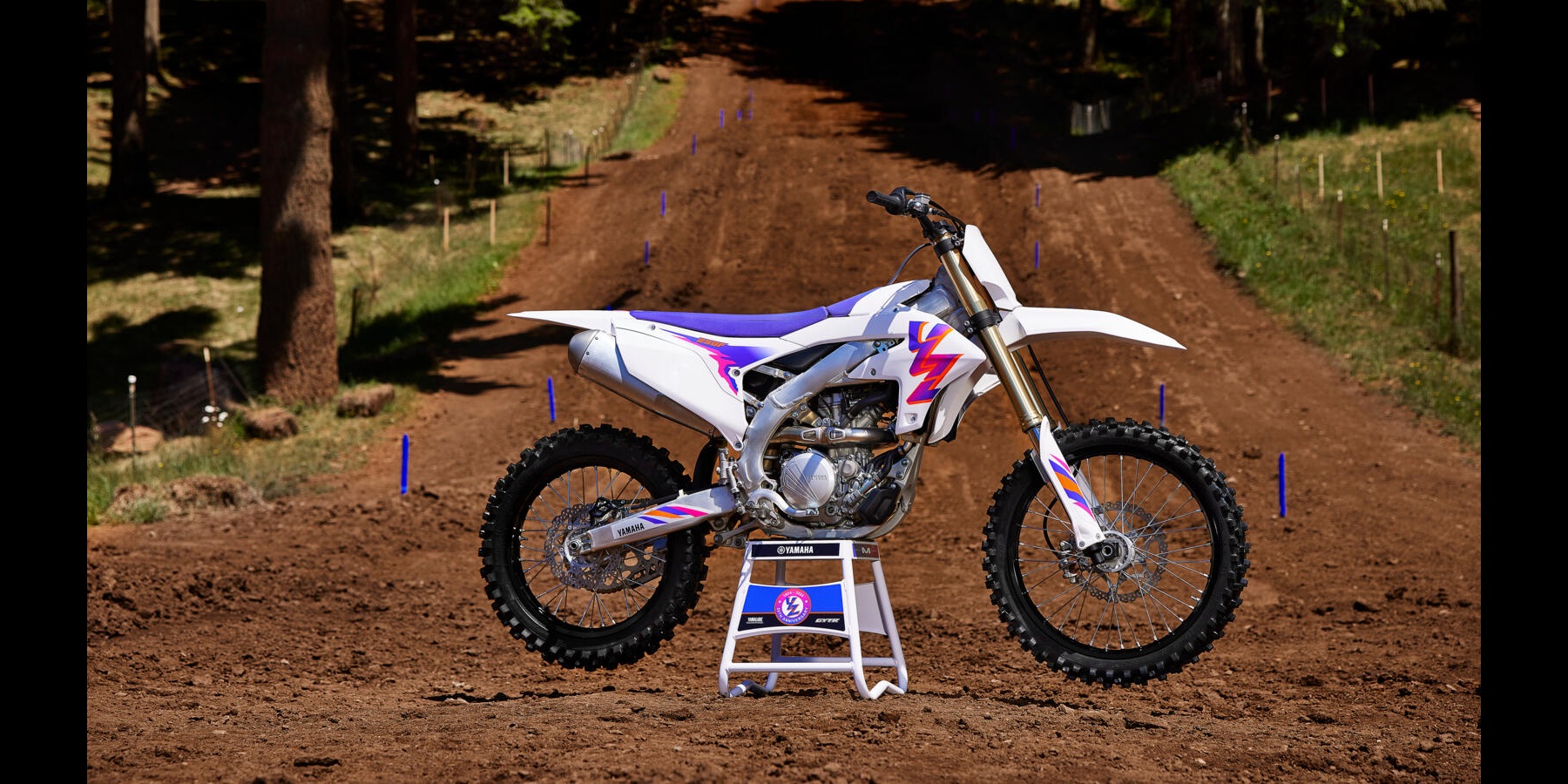 Η νέα YZ250F 50th Anniversary Edition γιορτάζει αυτό το σημαντικό κεφάλαιο στην ιστορία της YZ και τιμά τον πρώτο τίτλο της Yamaha στο Παγκόσμιο Πρωτάθλημα Motocross. Με έναν αποκλειστικό ιστορικό συνδυασμό χρωμάτων που αντλεί έμπνευση από τη δεκαετία του 1990, καθώς και με όλη την προηγμένη τεχνολογία που διαθέτει η νέας γενιάς YZ250F, αυτή η 50th Anniversary Edition δίνει στους αναβάτες την ευκαιρία, να αποκτήσουν μια αποκλειστική μοτοσυκλέτα. Το λευκό χρώμα συνδυάζεται με μωβ/ροζ γραφικά σε ρετρό στυλ, ενώ η μωβ σέλα και οι μαύροι τροχοί συμπληρώνουν την εικόνα μιας επετειακής μοτοσυκλέτας με πολύ ιδιαίτερη εμφάνιση.