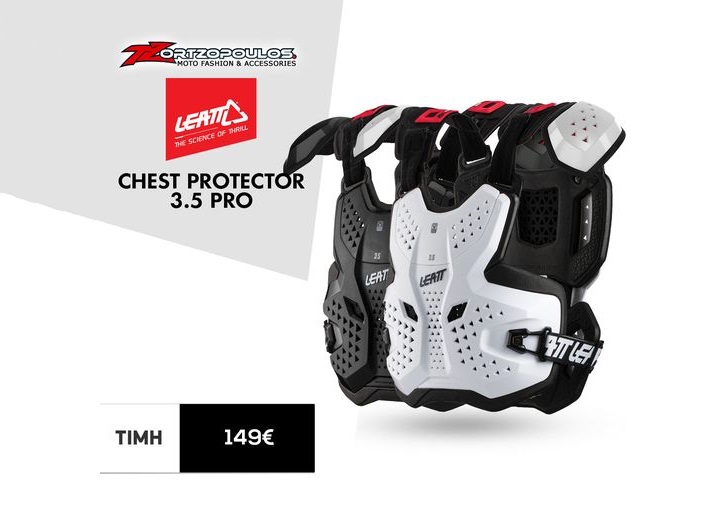 Ζυγίζοντας μόλις 1000 γραμμάρια, το Leatt 3.5 Chest Protector είναιπροστατευτικό με σκληρό κέλυφος που ιδανικό για αθλητές που αναζητούν λεπτή και ελαφριά προστασία στο στήθος και την πλάτη.