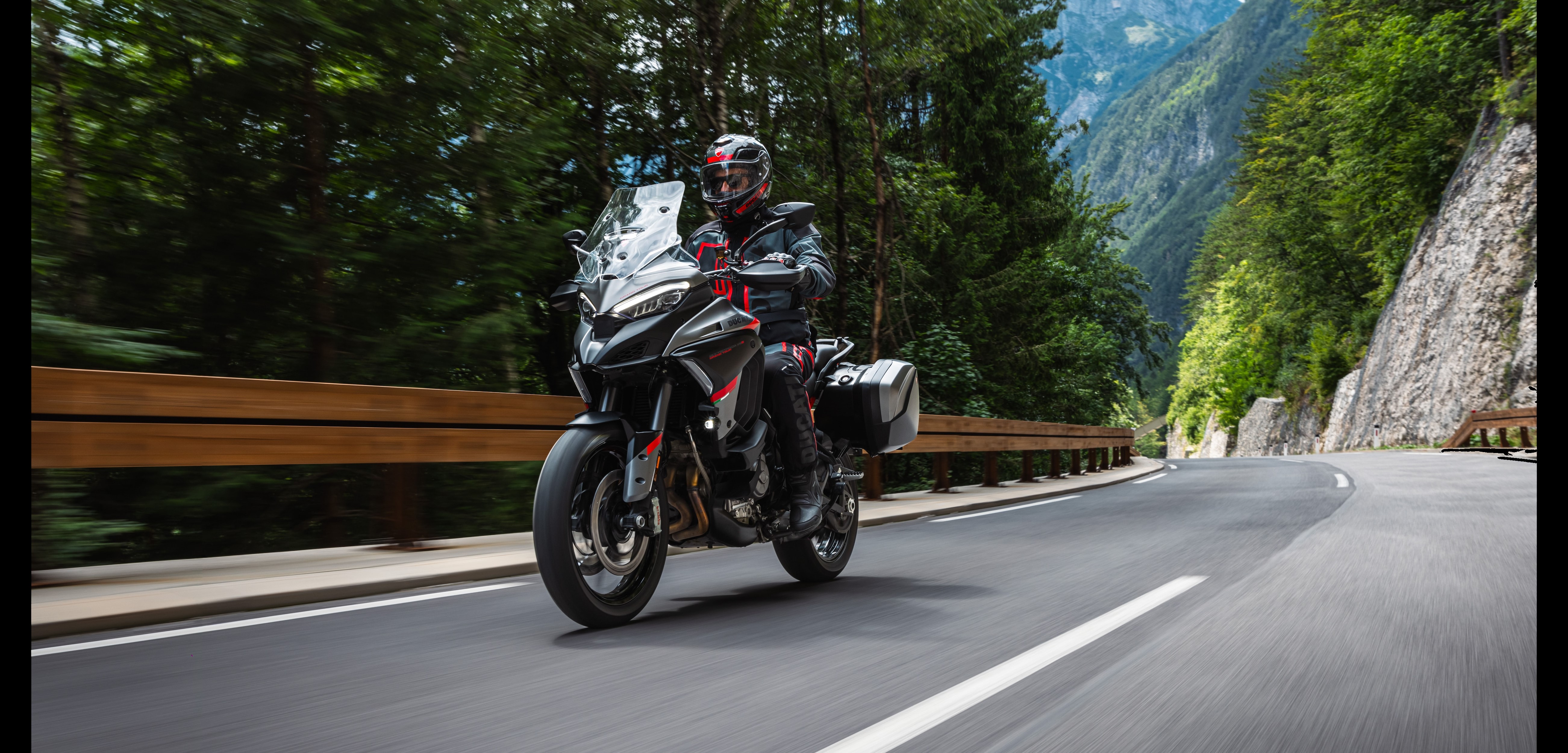 Οι στάνταρ πλαϊνές βαλίτσες της Multistrada V4 S Grand Tour, είναι βαμμένες στο χρώμα της μοτοσυκλέτας. Χάρη στη συνολική χωρητικότητα των 60 λίτρων, σας επιτρέπουν να παίρνετε μαζί σας όλα όσα χρειάζεστε ακόμα και σε μεγαλύτερα ταξίδια.