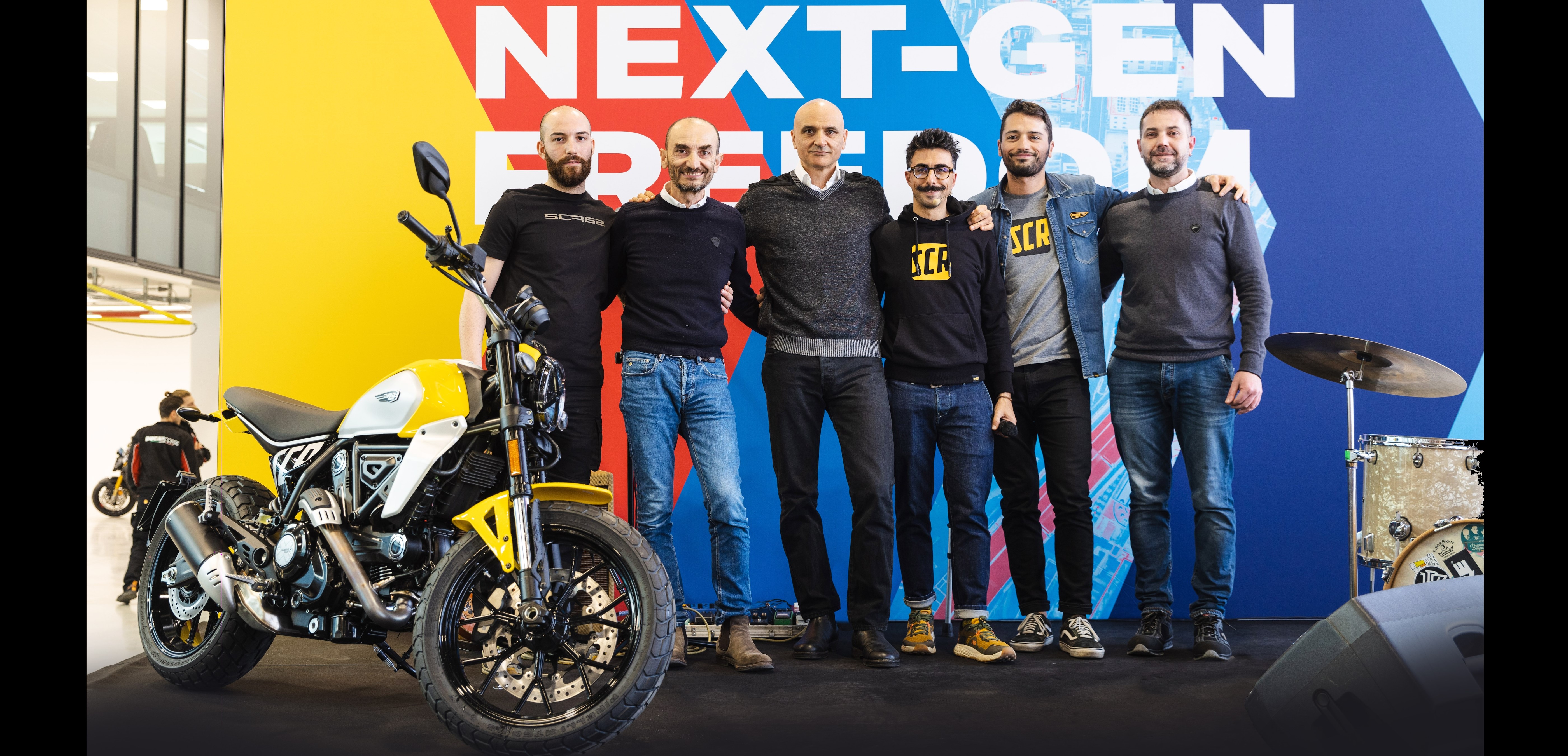 Η παραγωγή της πρώτης μονάδας γιορτάστηκε στο νέο κτίριο Finitura e Delibera Estetica. Μετά την παραδοσιακή «βάφτιση» από τον CEO Claudio Domenicali, η τελετή μετατράπηκε σε ένα πάρτι με animations και μουσική στο οποίο όλοι οι εργαζόμενοι μπορούσαν να θαυμάσουν και τα εννέα χρώματα της νέας Ducati Scrambler.