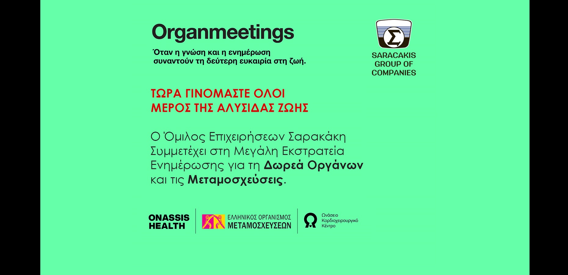 Ο Όμιλος Επιχειρήσεων Σαρακάκη στο πλαίσιο των δράσεων Εταιρικής Κοινωνικής Ευθύνης και με τη δέσμευση να είναι ωφέλιμος και να προσφέρει στο σύνολο της κοινωνίας, συμμετέχει ενεργά στη μεγάλη εκστρατεία ενημέρωσης για τη δωρεά οργάνων και τις μεταμοσχεύσεις.