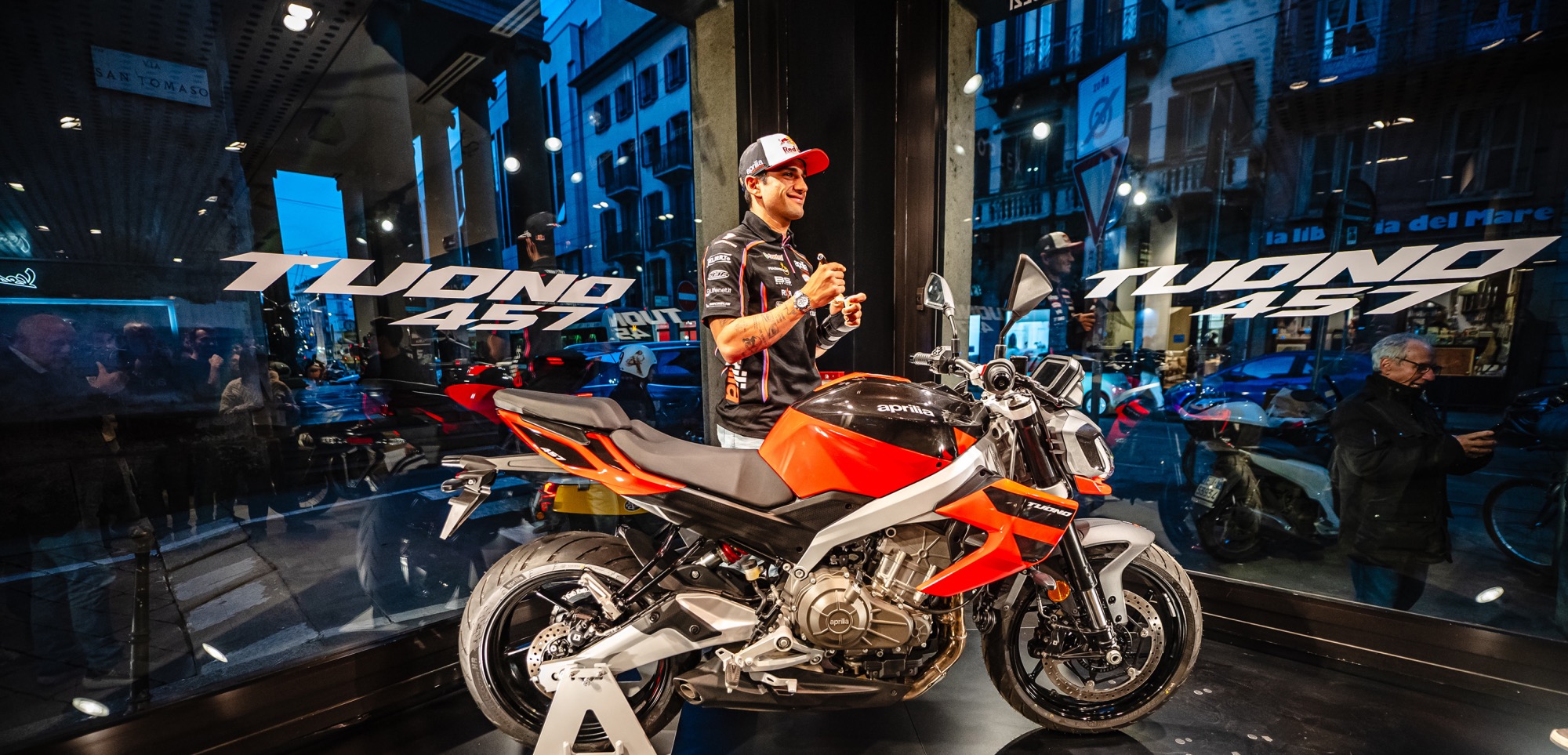 Ο Πρωταθλητής του MotoGP, Jorge Martin, φτάνει στο Μιλάνο για να σηματοδοτήσει την έναρξη των προ-παραγγελιών για τη νέα Aprilia Tuono 457.
