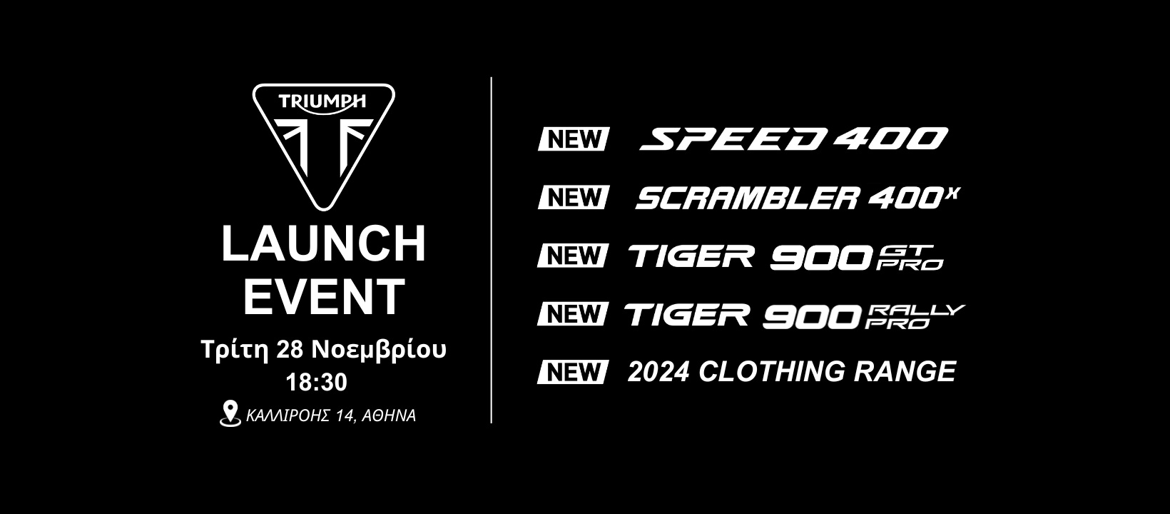 Σημείωση: Οι μοτοσυκλέτες θα παραμείνουν για μικρό χρονικό διάστημα στην Ελλάδα για τις ανάγκες της παρουσίασης, ώστε να έχετε το προνόμιο να τις δείτε πριν από την κανονική τους άφιξη (Tiger 900: μέσα Δεκεμβρίου, Speed 400 & Scrambler 400X: τέλος Ιανουαρίου).