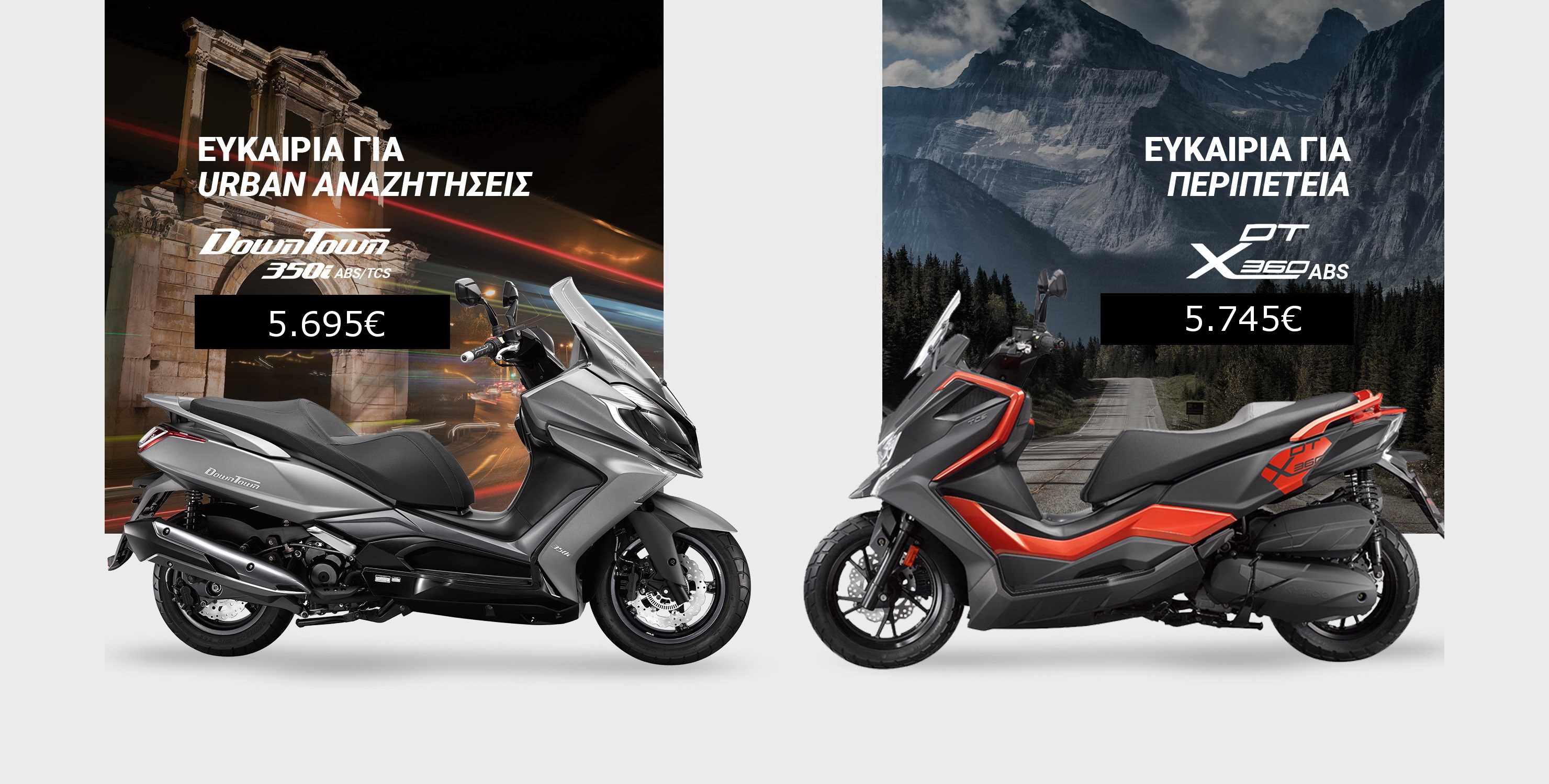 Τα X-Τown 300 ABS, X-Town CT300 ABS, Downtown 350 ABS/TCS και DT X360 ABS/TCS δεν χρειάζονται συστάσεις, προσαρμοσμένα όλα στις προδιαγραφές Euro5 απευθύνονται σε όσους απαιτούν μοναδική ποιότητα, κορυφαία αξιοπιστία και μέγιστη χρηστικότητα. Και τώρα, με τις τιμές τους να χαμηλώνουν σημαντικά, αποτελούν εξαιρετικές επιλογές για ένα ευρύ αγοραστικό κοινό με ποικίλες ανάγκες και προτεραιότητες.