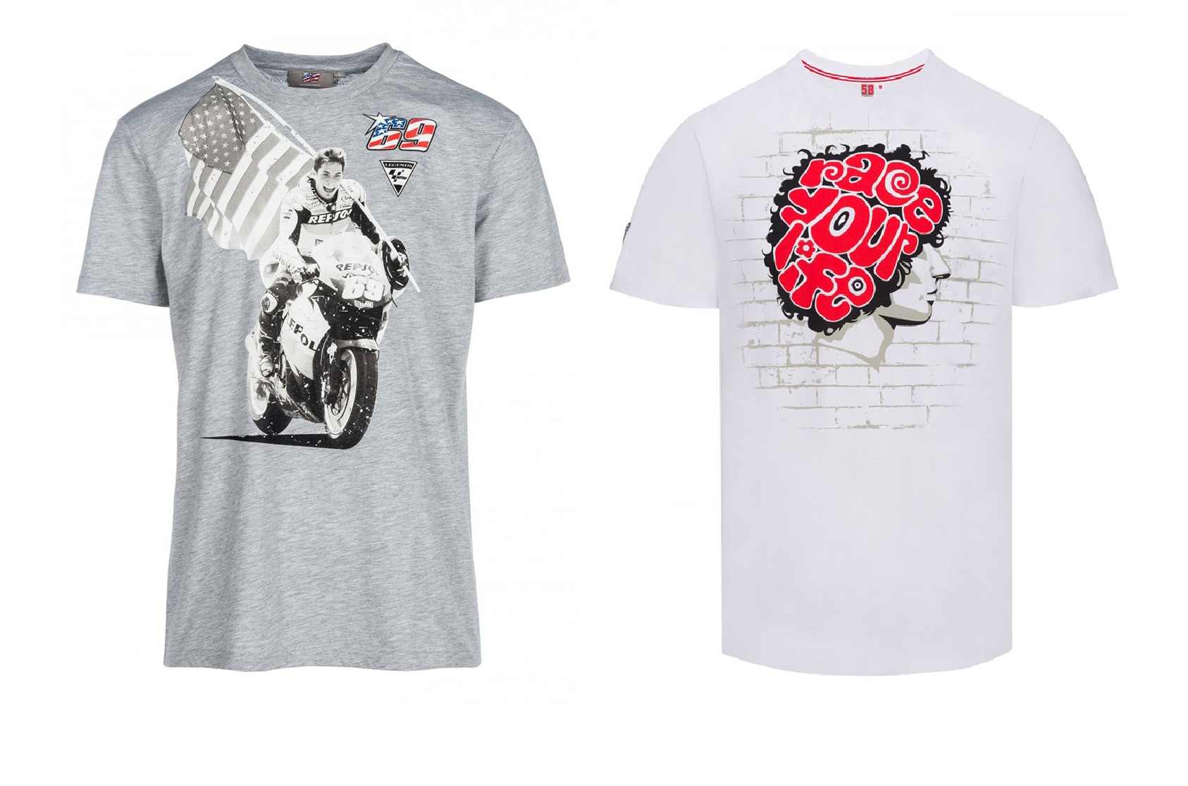 Αποκτήστε τώρα την μπλούζες (t-shirt) καπελάκια και άλλα αξεσουάρ με τα σήματα, τα χρώματα και τους αριθμούς συμμετοχής των παγκόσμιων πρωταθλητών και των θρύλων του MotoGp και του WorldSBK στα καταστήματα Peristeras Moto Tyres και Α. Μ. Παπαγεωργίου.