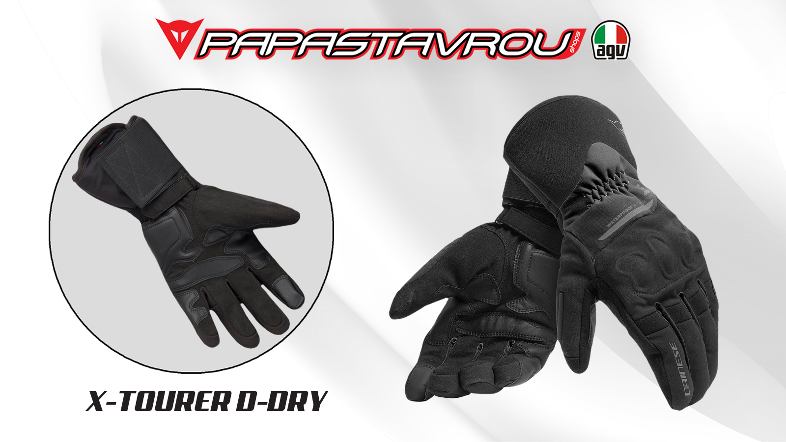 Στα Papastavrou shops τα γάντια X-TOURER D-DRY της DAINESE. Αδιάβροχα, συνθετικά χειμερινά γάντια μηχανής με προστατευτικά στις αρθρώσεις με ένθετα ergo-techno.