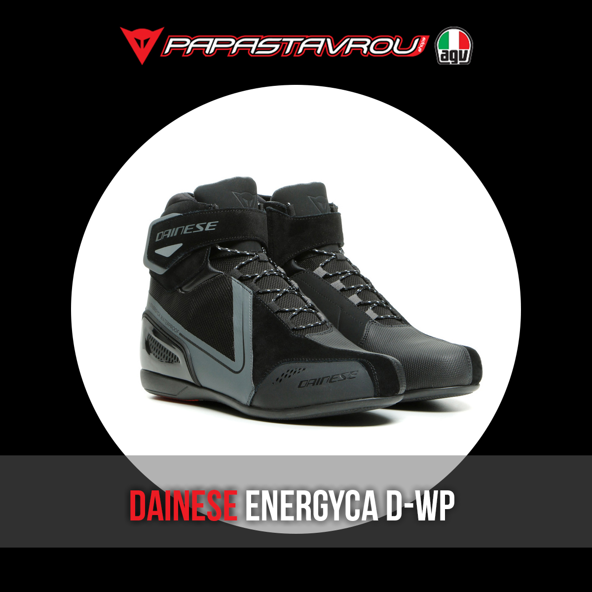 Στα Papastavrou Shops το αδιάβροχο μποτάκι Energyca D-WP της Dainese. Είναι το ιδανικό παπούτσι για ένα άνετο και στεγνό πόδι σε όλες τις συνθήκες.