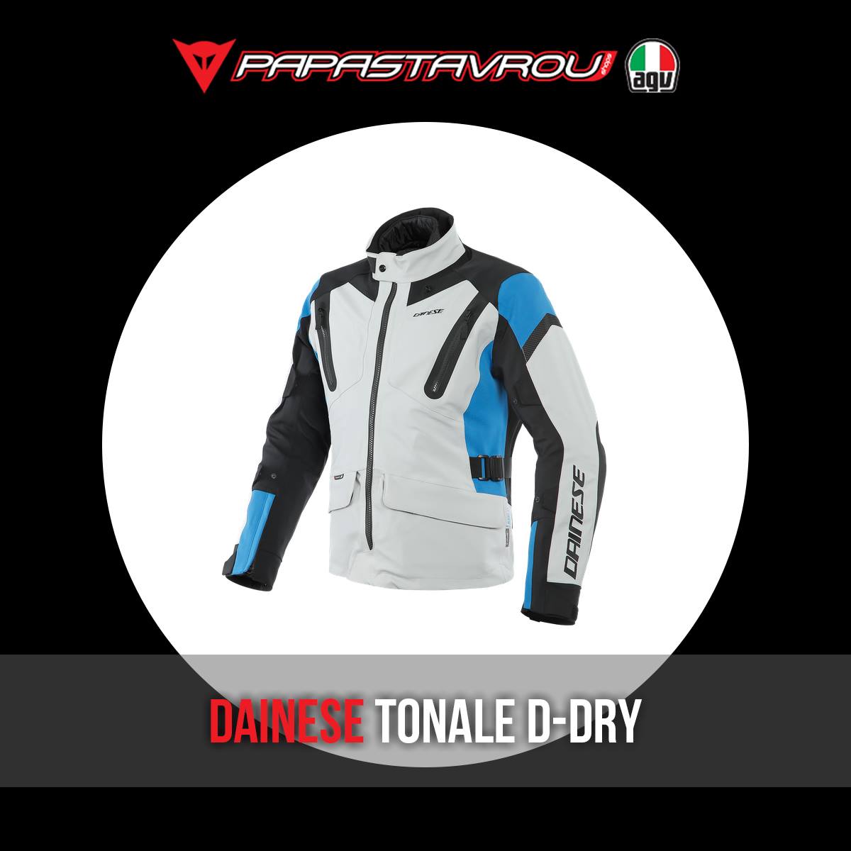 Στα Papastavrou Shops το μπουφάν DAINESE TONALE D-DRY είναι για τους αναβάτες που λατρεύουν την touring οδήγηση και τις μακρινές διαδρομές. Το ύφασμα υψηλής αντοχής D-DRY XT είναι ελαστικό και πλήρες αδιάβροχο, προστατεύοντας τον αναβάτη από την βροχή και τις αντίξοες συνθήκες, κάνοντας την οδήγηση ασφαλή και άνετη.