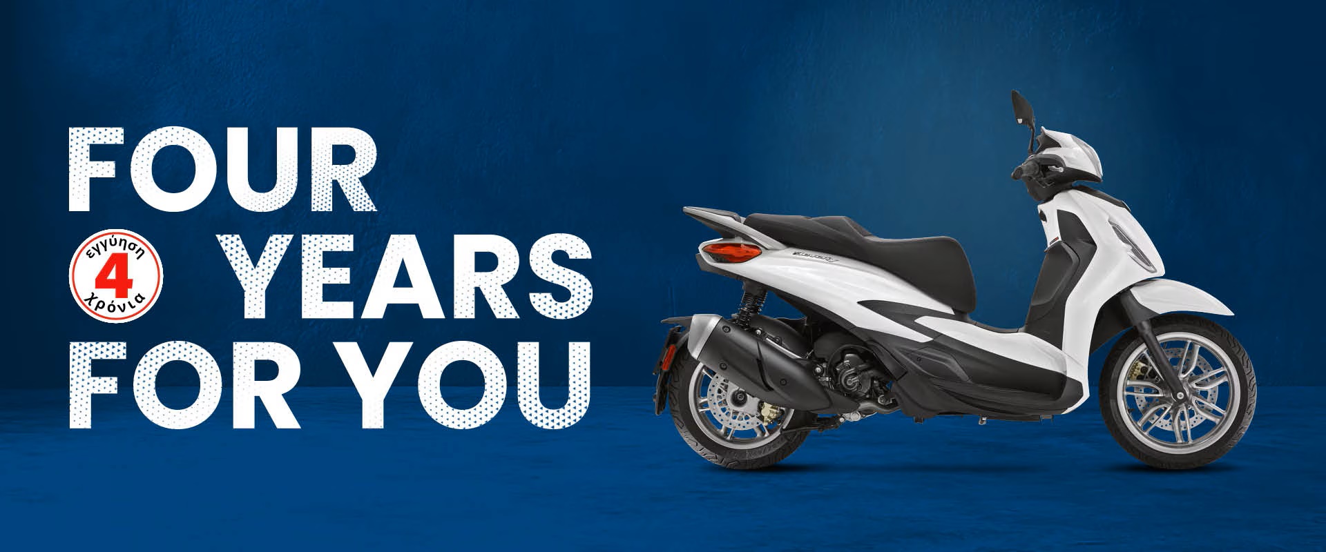 Όλα τα σκούτερ Piaggio, Vespa και Aprilia 50cc (με έγκριση τύπου Euro 5) και άνω των 50cc αν έχουν έγκριση τύπου Euro 5+, θα καλύπτονται από τετραετή εγγύηση, αρχής γενομένης από τις 19 Μαΐου.