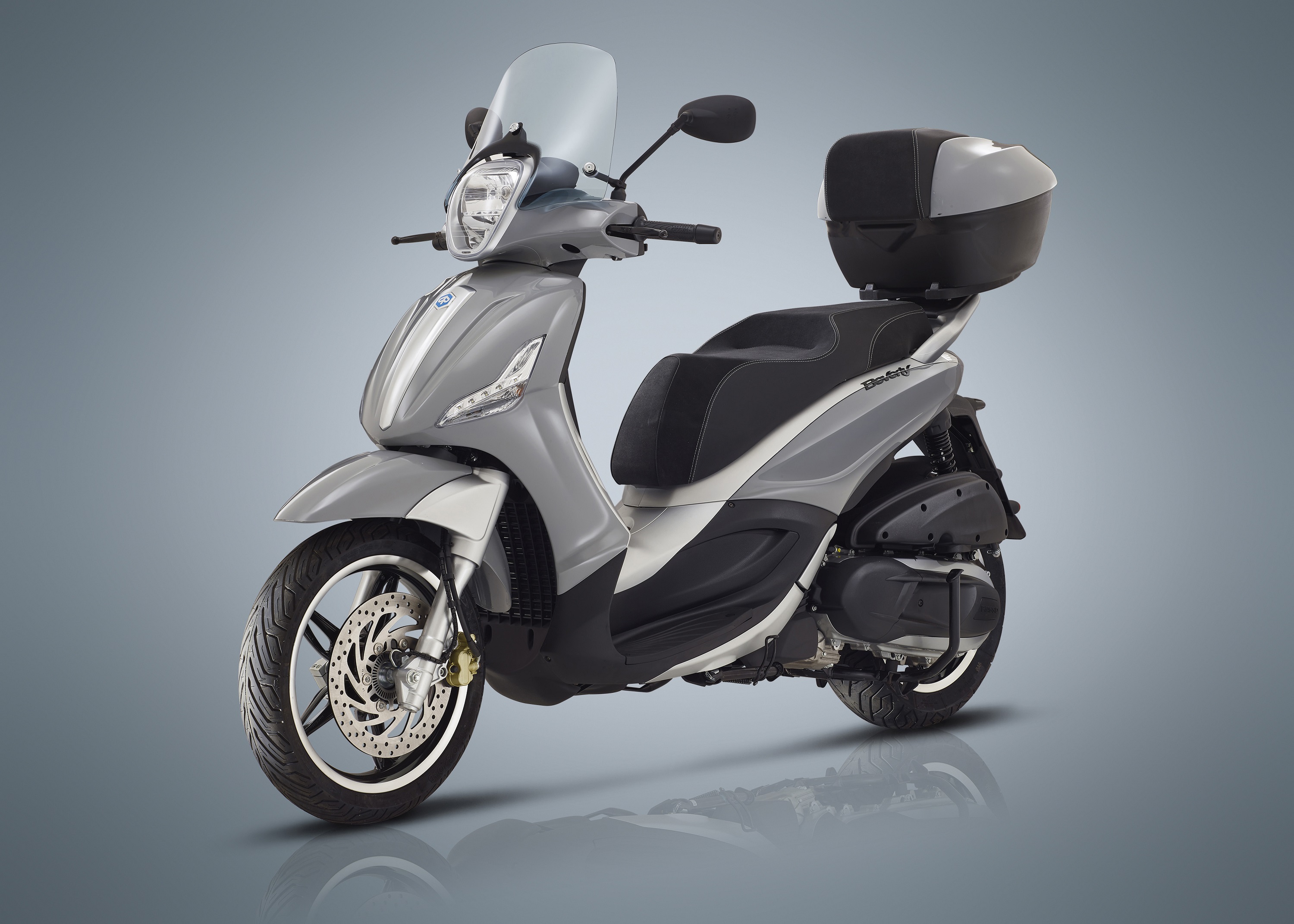 Με το Beverly, η Piaggio ολοκληρώνει την προσφορά της στην κατηγορία των σκούτερ με μεγάλους τροχούς, απαντώντας σε κάθε ανάγκη καθημερινής μετακίνησης. Η είσοδος στους μεγάλους τροχούς της Piaggio ανοίγει με το Liberty, εξοπλισμένο με ABS και τον αερόψυκτο κινητήρα Piaggio. Η μετάβαση από το μοντέλο «εισαγωγής» στο μεγάλο και επιβλητικό Beverly περνάει από το Medley, ένα μοντέλο με πιο πλούσιο βασικό εξοπλισμό, που περιλαμβάνει το σύστημα «Start&Stop», τον κινητήρα Piaggio i-Get στην υγρόψυκτη εκδοχή του, το ABS, αλλά και έναν απίστευτο αποθηκευτικό χώρο κάτω από τη σέλα, για δύο full-face κράνη. Η οικογένεια Beverly αντιπροσωπεύει λοιπόν την άφιξη στα σκούτερ Piaggio με μεγάλους τροχούς, μεγαλύτερου κυβισμού.