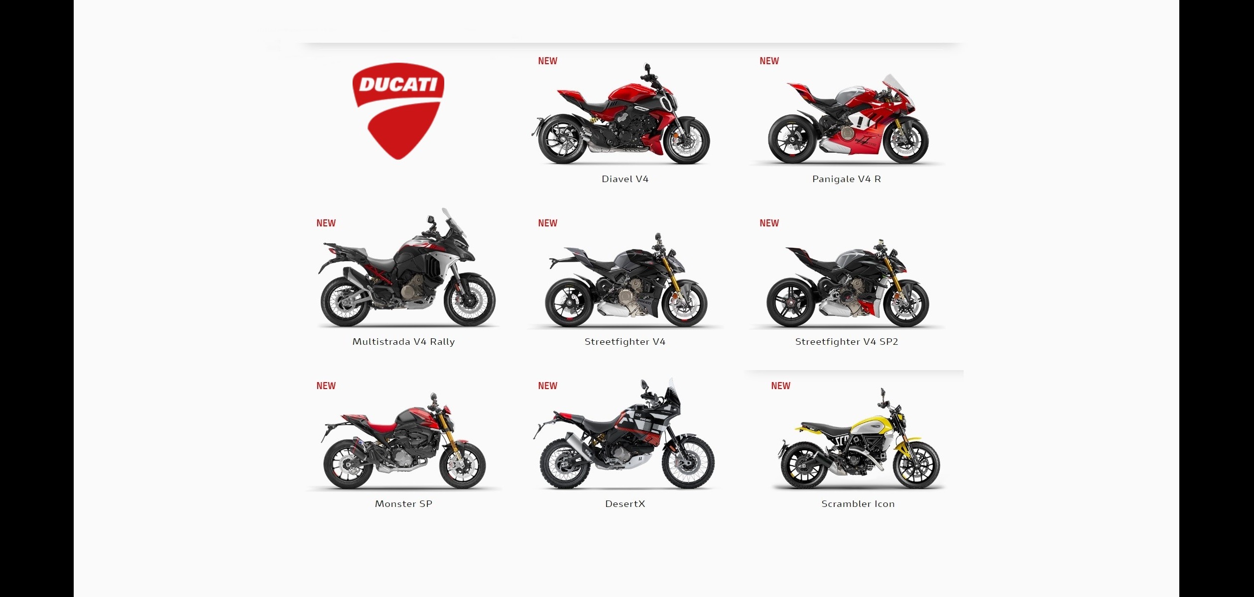 Οι επισκέπτες της έκθεσης θα έχουν τη μοναδική ευκαιρία να δούνε για πρώτη φορά από κοντά τη νέα Multistrada Rally, την εκπληκτικής σχεδίασης Diavel V4, την σπορ Monster SP, τη νέα Streetfighter V4, τη DesertX στο πανέμορφο νέο χρώμα black grey, καθώς και τη next generation Scrambler Icon.