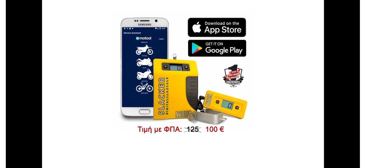 Με την εφαρμογή Motool Service Assistant θα έχετε ένα γρήγορο και ακριβές αποτέλεσμα για τις ρυθμίσεις sag (στατικό και με οδηγό) των αναρτήσεων εμπρός και πίσω, ένα pdf με οδηγίες χρήσης για το Slacker και βίντεο για μοτοσυκλέτες Δρόμου, Οff-Road, Adventure και MTB.