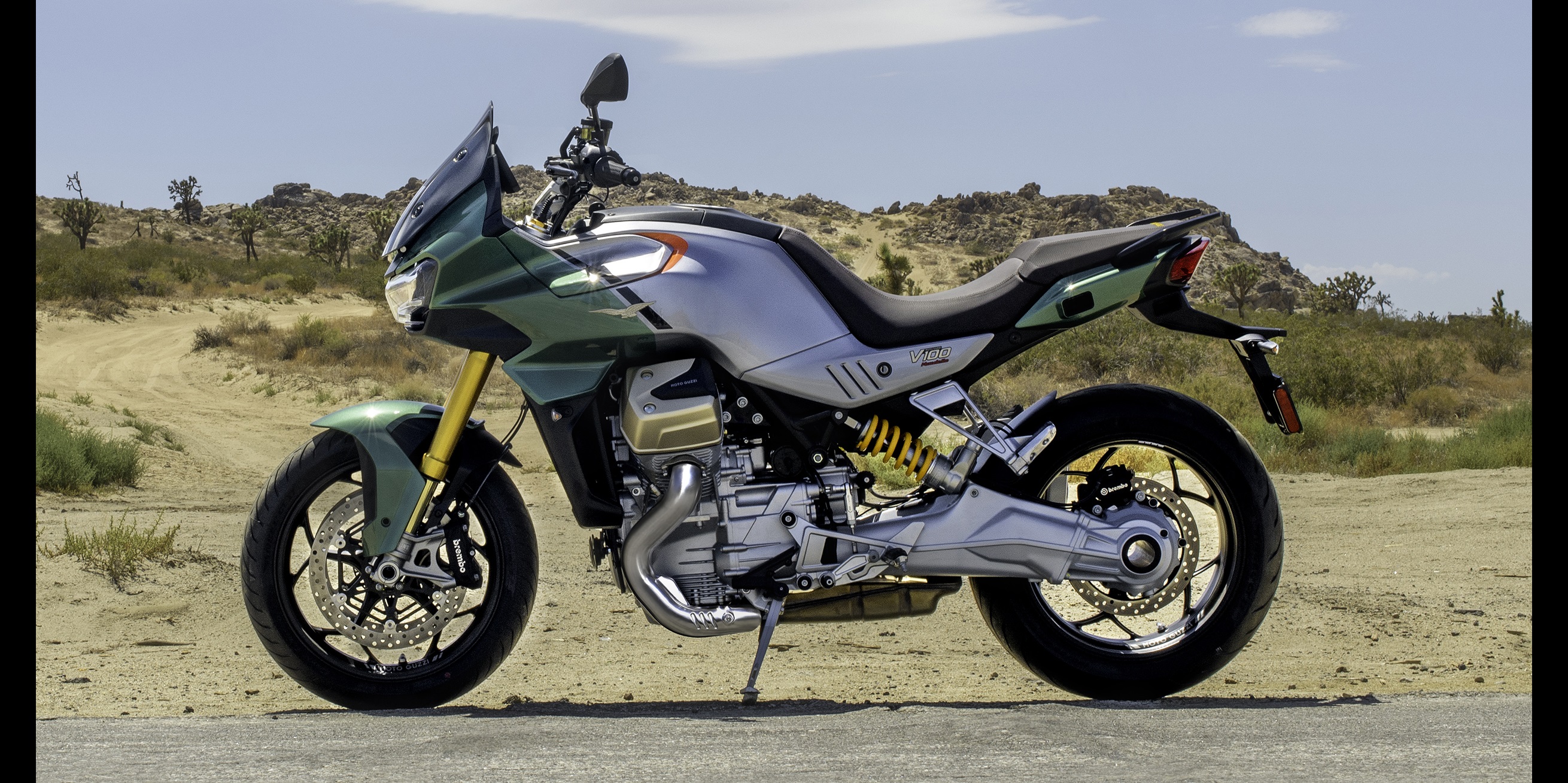 Η V100 Mandello είναι επίσης η πρώτη Moto Guzzi που τροφοδοτείται από τον νέο “compact block” κινητήρα, με προηγμένα τεχνικά χαρακτηριστικά. Η παράδοση γίνεται σεβαστή από την αρχιτεκτονική του εγκάρσιου V90° δικύλινδρου κινητήρα, που εγγυάται αυτόν τον μοναδικό τρόπο απόδοσης της ροπής και αυτόν τον αμίμητο ήχο Moto Guzzi, αλλά στην πραγματικότητα είναι εντελώς νέος και διαθέτει αναμφισβήτητα εξαιρετική απόδοση: η ισχύς είναι 115 HP και η ροπή είναι 105 Nm, με το 82% να είναι διαθέσιμο ήδη από τις 3.500 στροφές/λεπτό.