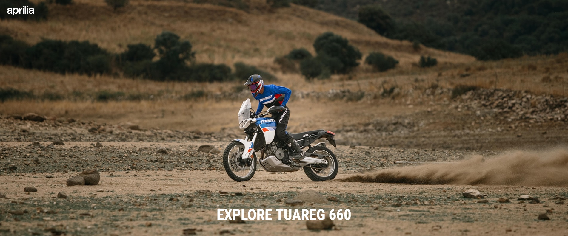 Για τους λάτρεις της Aprilia, Tuareg είναι το κατ’ εξοχήν off-road όχημα, που δημιουργήθηκε για τις μεγάλες προκλήσεις των αφρικανικών ράλι, όπως το Παρίσι Ντακάρ και το Ράλι Φαραώ.