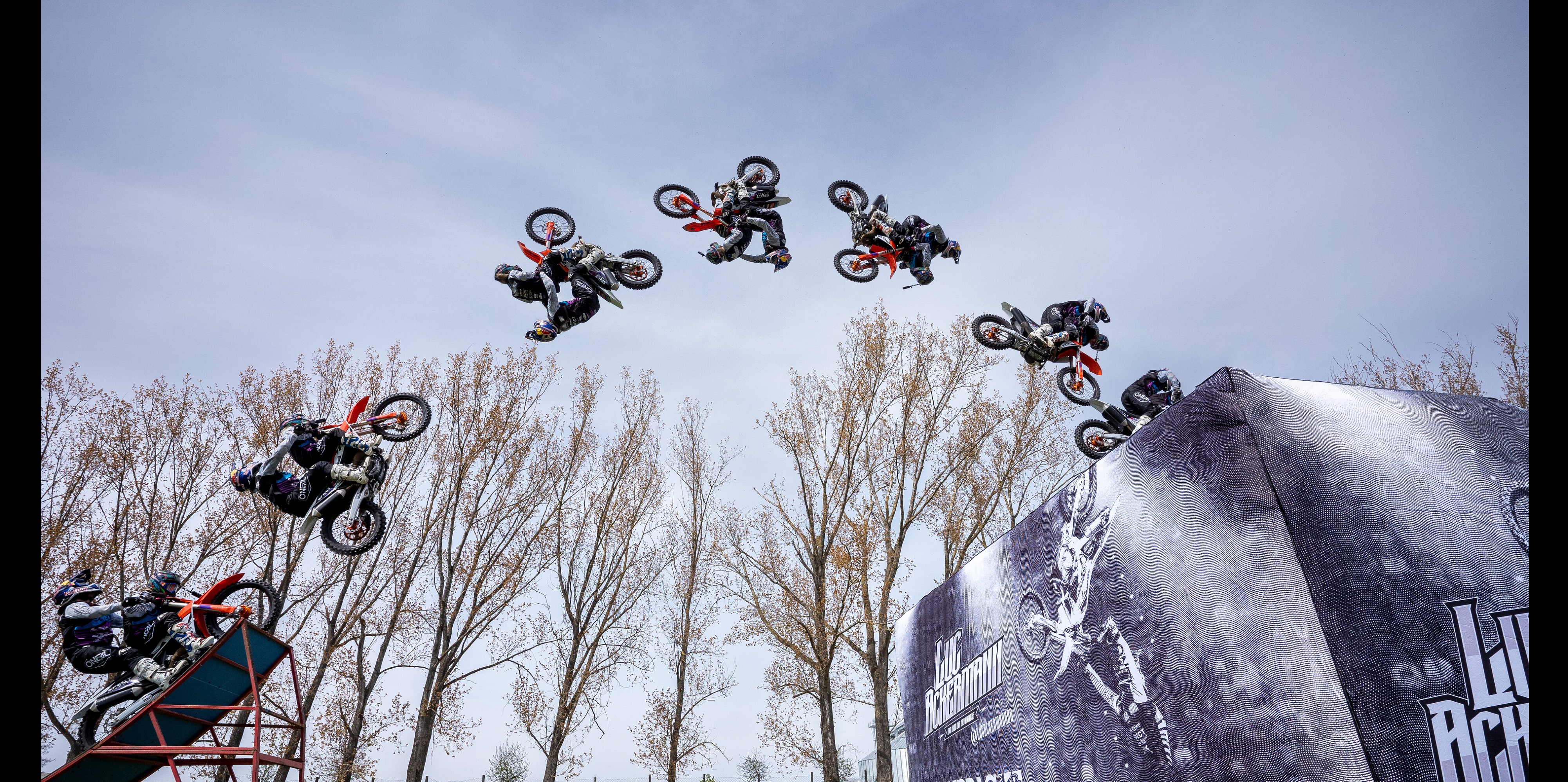 «Η ιδέα ήταν της μητέρας μου, η οποία πάντα ήθελε να κάνει μαζί μου ένα backflip, ήδη από τα 50α γενέθλιά της», λέει ο Γερμανός επαγγελματίας FMX Luc Ackermann, από το Niederdorla της Θουριγγίας, εξηγώντας πώς προέκυψε η ιδέα για αυτό το ιδιαίτερο δώρο προς τη μητέρα του. Μάνα και γιος «πετούν» μαζί με την FMX μοτοσικλέτα του, εκτελώντας ένα backflip περίπου 8 μέτρων σε ύψους και 13 μέτρα μακριά από το έδαφος, και προσγειώνονται σε έναν αερόσακο. «Αυτό ήταν το πιο συναρπαστικό άλμα της ζωής μου», είπε ο Ackermann μετά την ασφαλή προσγείωση. «Είμαι πολύ περήφανος για τη μαμά μου που το έκανε».