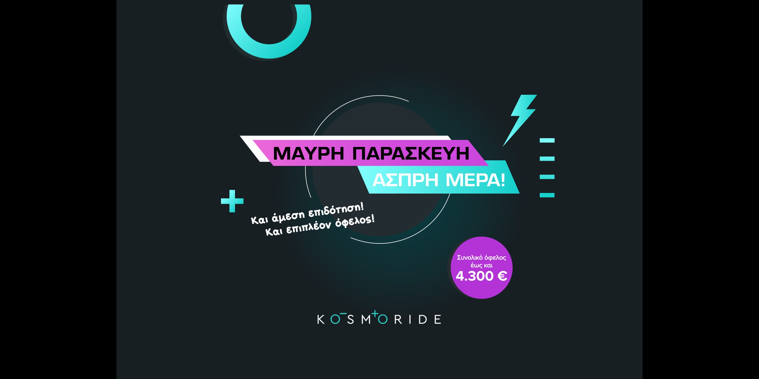 Η Kosmoride ακόμα μία φορά αλλάζει τα δεδομένα στην αγορά των e-Bike και των e-Scooter και εκμηδενίζει με μία κίνηση την αναμονή για την επιδότηση του προγράμματος “Κινούμαι Ηλεκτρικά 2”.