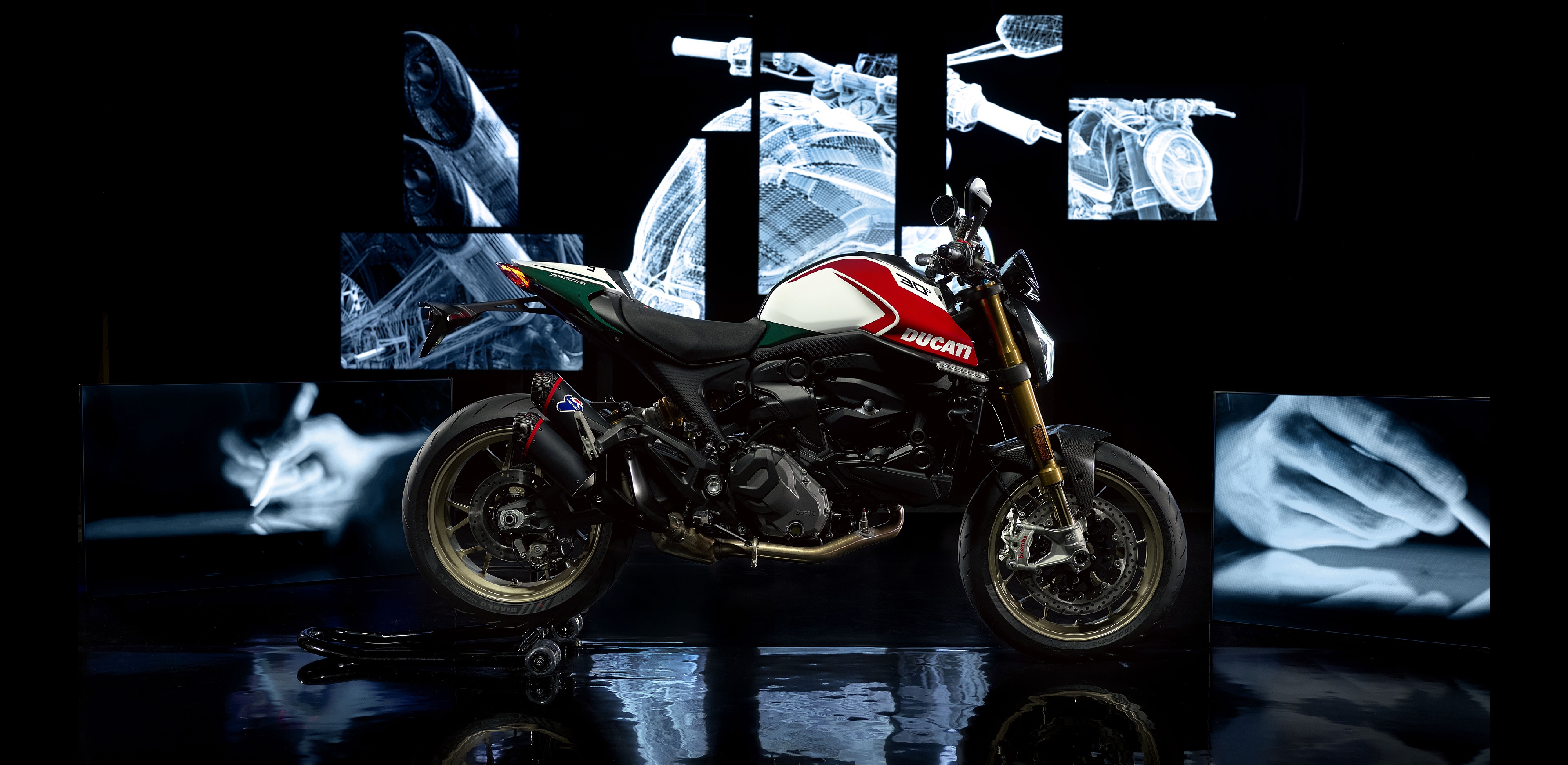 Με την επετειακή Monster 30° Anniversario ο κατασκευαστής από την Μπολόνια αποτίει φόρο τιμής στην πρώτη Monster 900 του 1993, μια σχεδίαση του Miguel Angel Galluzzi, που πυροδότησε την επανεμφάνιση των “γυμνών” μοτοσυκλετών.
