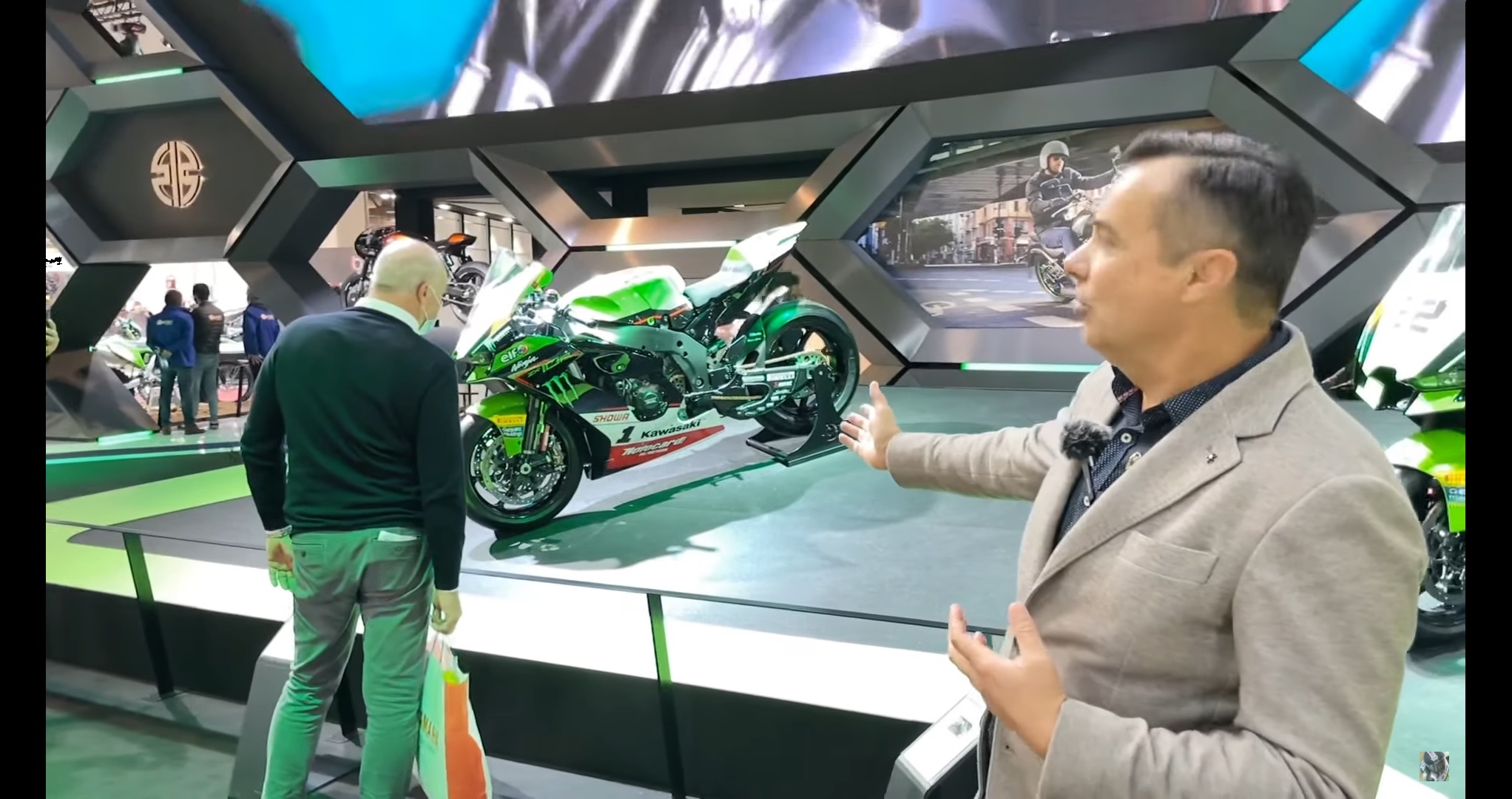Στο περίπτερο της Kawasaki, με το νέο εταιρικό σήμα, βλέπουμε τη σημαντικά ανανεωμένη υπερτροφοδοτούμενη H2 SX και την επίσης ανανεωμένη Versys 650, επίσης στο ίδιο περίπτερο τώρα υπάρχει και η Bimota KB 4 αφού η Kawasaki έχει εξαγοράσει τον θρυλικό ειδικό κατασκευαστή απο το Ρίμινι.