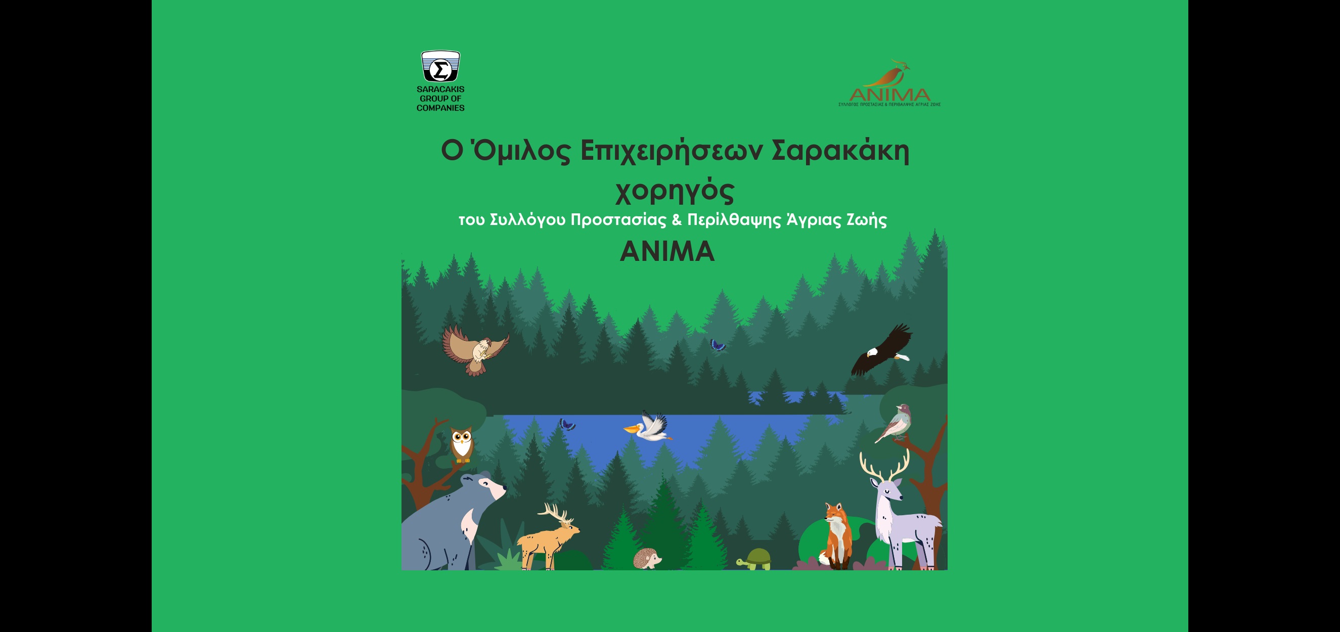 Ο Όμιλος Επιχειρήσεων Σαρακάκη, με αίσθημα ευθύνης απέναντι στην κοινωνία και το φυσικό περιβάλλον, αποφασίζει να στηρίξει ενεργά το έργο του Συλλόγου Προστασίας και Περίθαλψης Άγριας Ζωής, ΑΝΙΜΑ, συμβάλλοντας εμπράκτως στην προστασία και τη διατήρηση της πολύτιμης βιοποικιλότητας.