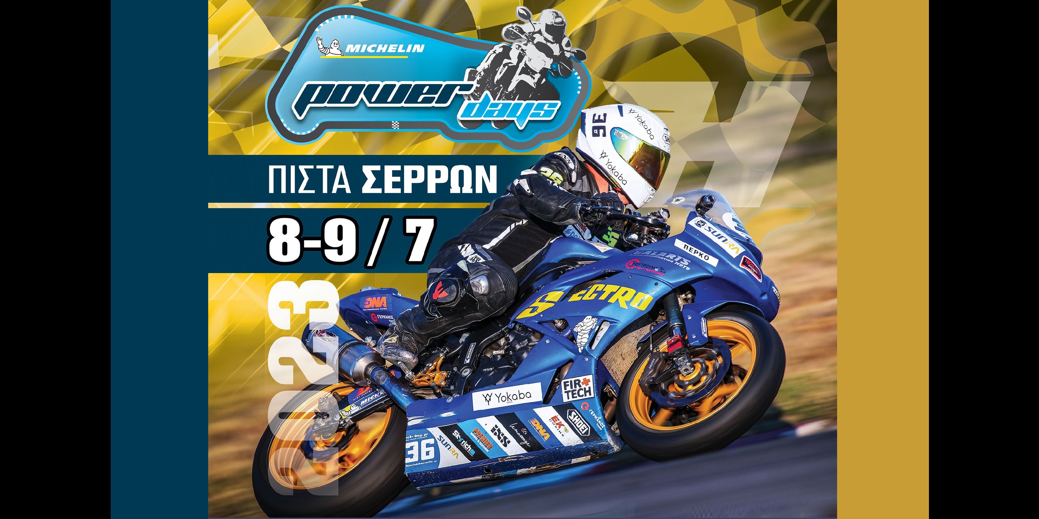 Οι Michelin Power Days είναι μια γιορτή της μοτοσυκλέτας που έχει σκοπό οι αναβάτες να εξελίξουν τις οδηγικές τους ικανότητες και να οδηγήσουν πιο γρήγορα στο ασφαλές ελεγχόμενο περιβάλλον της πίστας με τον κατάλληλο εξοπλισμό. Όλο αυτό γίνεται εφικτό με την επίβλεψη έμπειρων πλοηγών, οι οποίοι είναι έτοιμοι να παρέχουν καθοδήγηση βοηθώντας τους αναβάτες να βελτιώσουν την τεχνική τους και να αξιοποιήσουν στο έπακρο τον χρόνο τους στην πίστα. Η διοργάνωση μας φροντίζει για την ασφάλεια των συμμετεχόντων και τηρεί όλα τα μέτρα ασφαλείας, καθώς σε περίπτωση πτώσης υπάρχει διαθέσιμο εξειδικευμένο προσωπικό για την παροχή βοήθειας.