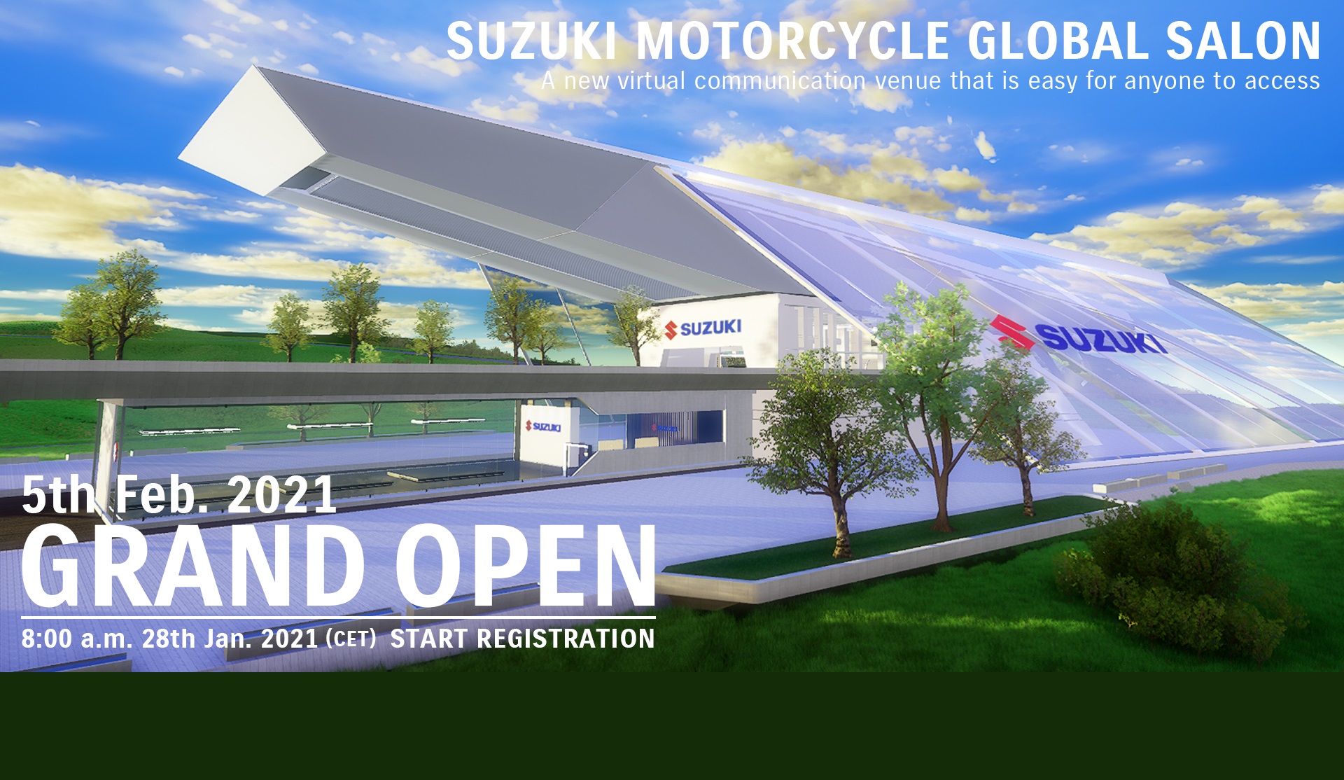 Καλωσορίζουμε το νέο Suzuki Motorcycle Global Salon, μια πλατφόρμα επικοινωνίας νέας γενιάς, για όλους τους φίλους της μάρκας που θα μπορούν να την χρησιμοποιήσουν στο laptop ή το κινητό τους από τις 5 Φεβρουαρίου 2021*.