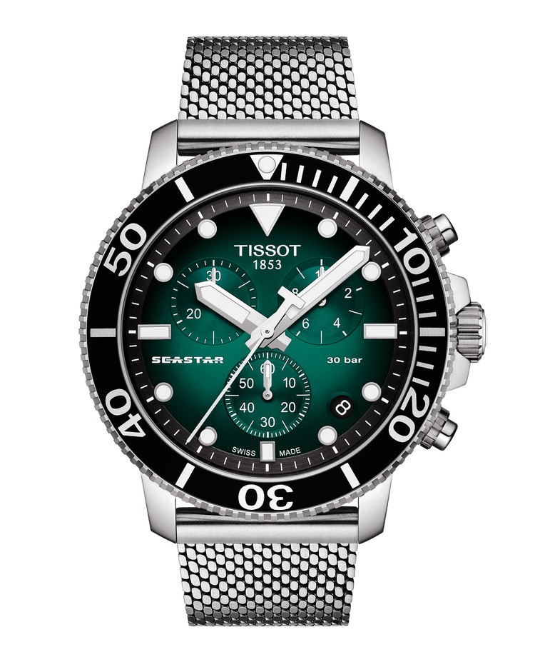 Ακόμα όμως και έξω από τη θάλασσα, το Tissot Seastar 1000 είναι ένα μοντέλο για κάθε στιγμή, περίσταση, και στυλ. Και για τους λάτρεις των χρονογράφων, αυτό το μοντέλο Seastar με το εντυπωσιακό πράσινο καντράν κυκλοφορεί και σε εκδοχή quartz χρονογράφου.