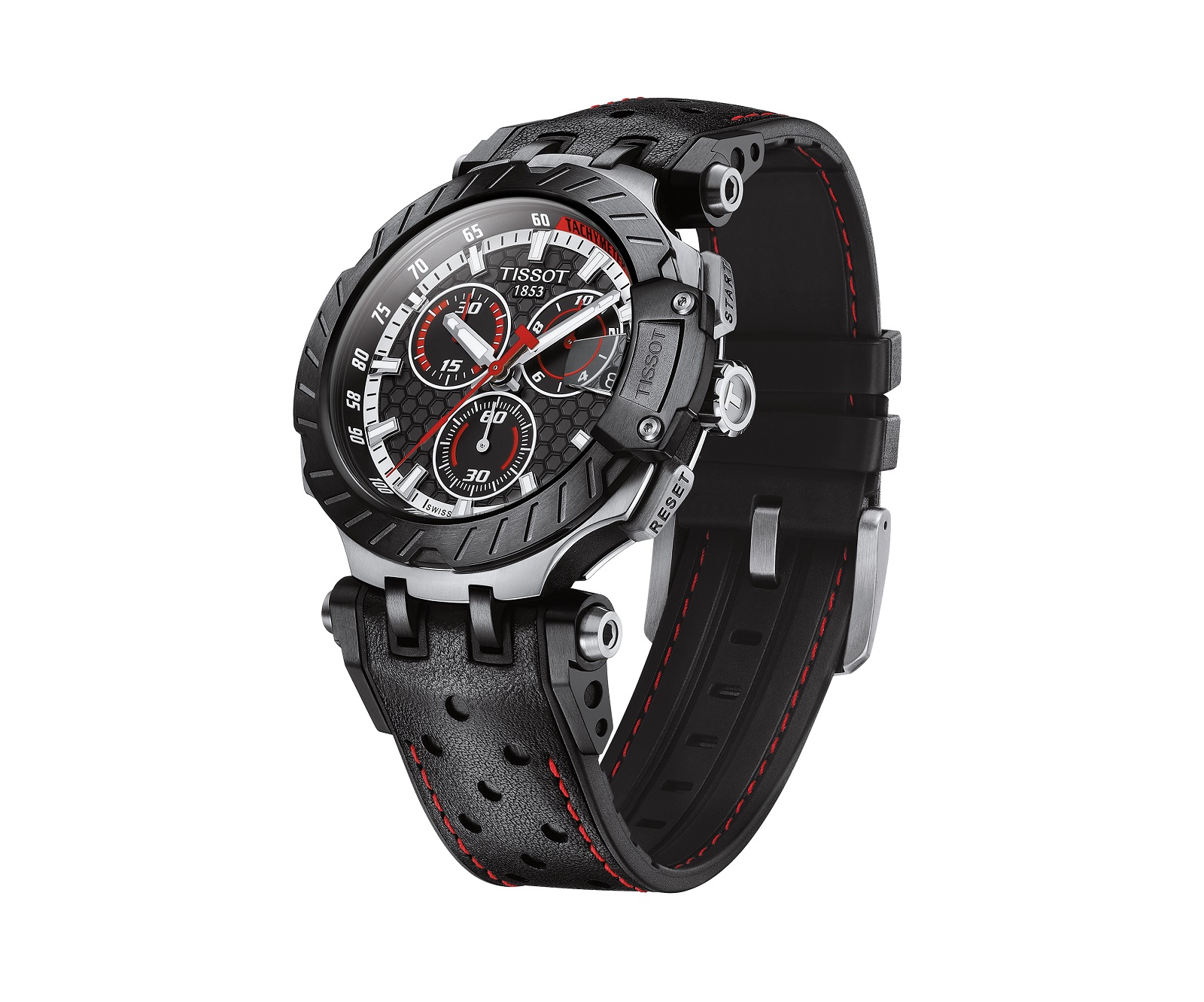 Εμπνευσμένο από τις αγωνιστικές μοτοσυκλέτες, με την πρωτοποριακή τεχνολογία, που αγωνίζονται στο πρωτάθλημα MotoGP, το Tissot T-Race MotoGP Quartz Limited Edition διαθέτει έναν αριθμό από χαρακτηριστικά που σχετίζονται με αυτές, όπως η στεφάνη και η κορώνα που παραπέμπουν στο δισκόφρενο. Ταυτόχρονα, το δερμάτινο λουράκι με τις τρύπες με το κόκκινο γαζί είναι απίστευτα σπορτίφ.