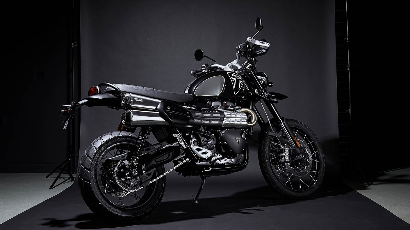 Για να γιορτάσει αυτήν την εμβληματική συνεργασία η Triumph, η κορυφαία βρετανική μάρκα μοτοσυκλετών, είναι περήφανη που παρουσιάζει την πρώτη επίσημη μοτοσυκλέτα που συνδέεται απευθείας με το Bond Franchise. Η Scrambler 1200 Bond Edition είναι μια εξαιρετικά σπάνια, περιορισμένης παραγωγής μοτοσυκλέτα Scrambler 1200 που διαθέτει έναν μοναδικό σχεδιασμό 007 και περιορίζεται σε παραγωγή μόλις 250 κομματιών παγκοσμίως. Αυτή η ειδική μοτοσυκλέτα Bond Edition εμπνεύστηκε από τις εκπληκτικές ειδικά προσαρμοσμένες Scrambler 1200 που εμφανίζονται στο No Time To Die. Διαθέτει όλες τις εξαιρετικές επιδόσεις και τις δυνατότητες της κορυφαίων προδιαγραφών Triumph Scrambler 1200 XE, μαζί με πολυτελείς λεπτομέρειες.