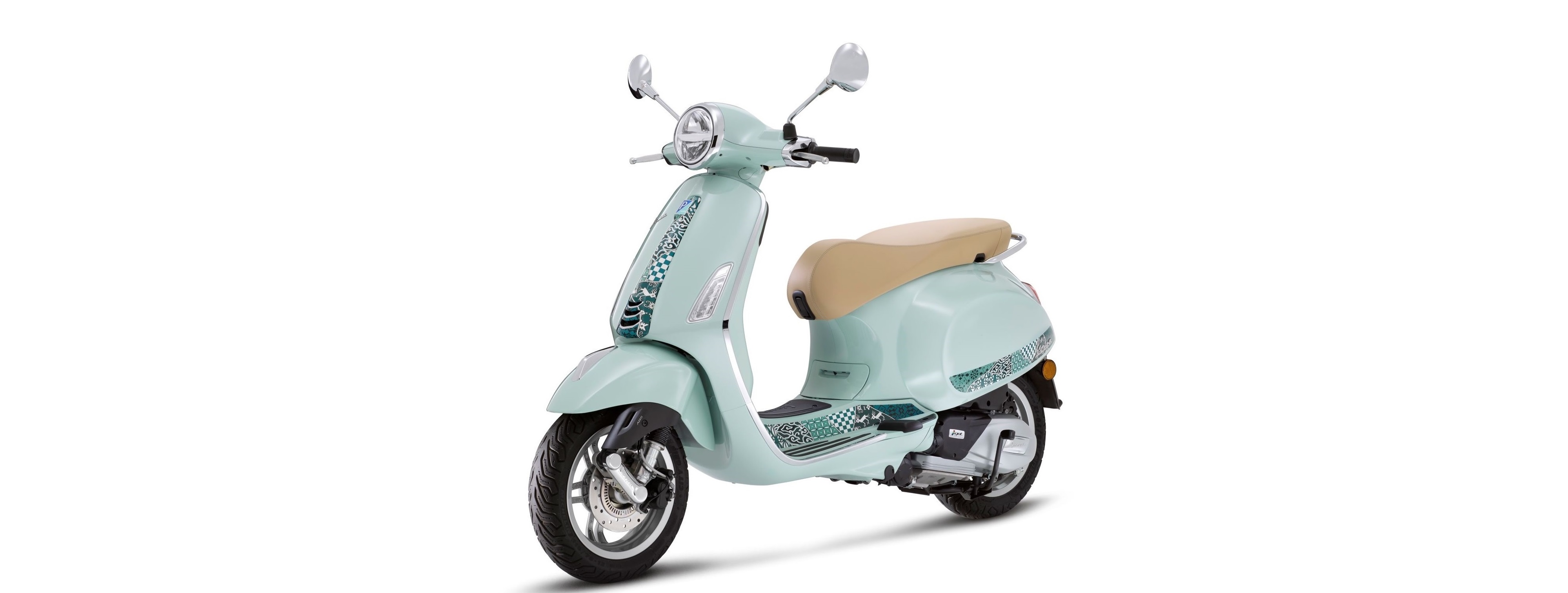 Η Vespa δημιουργήσε μια ειδική έκδοση που είναι μια ωδή στη ζωή και τη χαρά, στα ταξίδια και στην ανακάλυψη. Το βασικό της χρώμα, το Batik Green, παραπέμπει σε κύματα που πέφτουν σε τροπικές παραλίες.