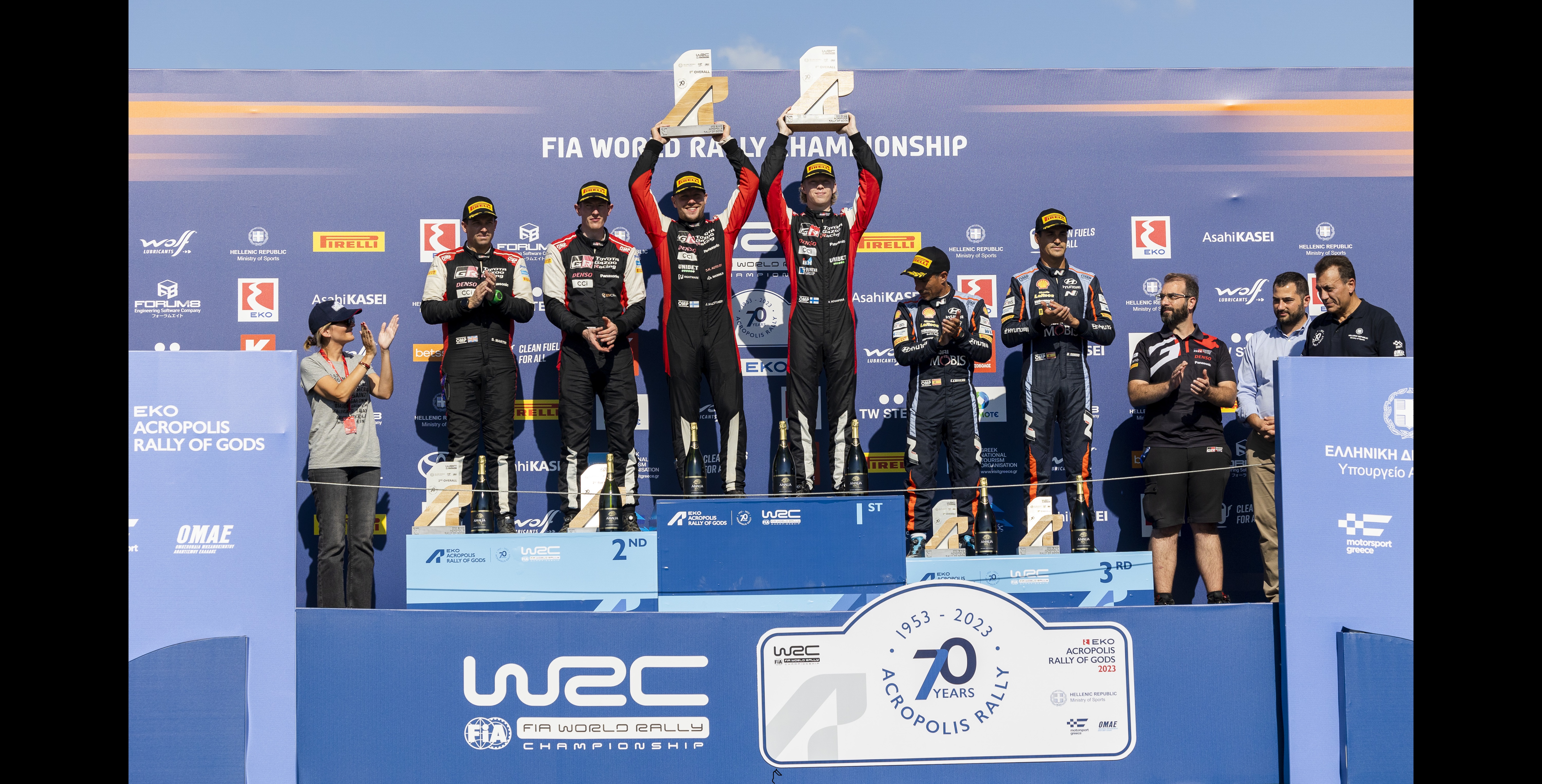 Ο Ισπανός οδηγός κράτησε ψηλά τη σημαία για τη Hyundai Shell Mobis, φέρνοντας το i20 N Rally1 στην τρίτη θέση, μπροστά από τον Ott Tanak με το M-Sport Ford Puma Rally1. Ο Εσθονός έχασε κάθε ελπίδα για νίκη μόλις από τη δεύτερη μέρα, λόγω της ποινής χρόνου που δέχθηκε έπειτα από πρόβλημα με την αντλία νερού. Παρ’ όλα αυτά, έμεινε στη μάχη και αποζημιώθηκε με την τέταρτη θέση, αποτέλεσμα που για τον ίδιο είναι το καλύτερο των τελευταίων μηνών! Οι Esapekka Lappi με το Hyundai i20 N Rally1 και Takamoto Katsuta με το Toyota GR Yaris Rally1 συμπλήρωσαν την πρώτη εξάδα, έχοντας αντιμετωπίσει και αυτοί με τη σειρά τους αρκετά προβλήματα στις ακροπολικές ειδικές διαδρομές.