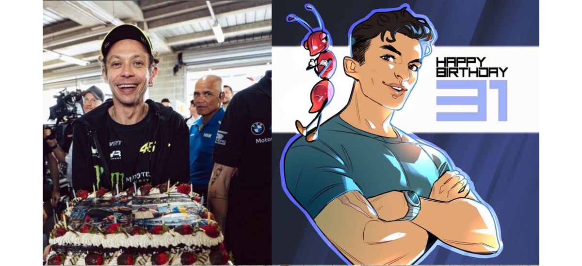Χθες ο Valentino Rossi και σήμερα ο Marc Marquez γιόρτασαν τα γενέλθιά τους. 45 χρόνων ο Ιταλός, 31 ο Ισπανός, οι δύο σούπερσταρ του MotoGP έχουν 9 και 8 Παγκόσμιους Τίτλους αντίστοιχα, ενώ φέτος και οι δύο μπορούν να διεκδικήσουν ακόμη ένα, ο MM93 στην μοτοσυκλέτα και ο VR|46 στα αυτοκίνητα.