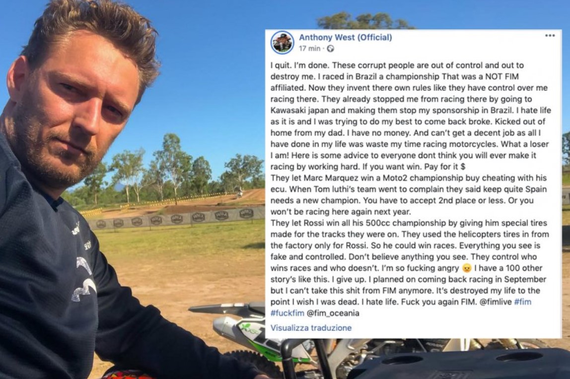 Είμαι τόσο τσαντισμένος κι έχω άλλες 100 τέτοιες ιστορίες να σας πω. Τα παρατάω. Σχεδίαζα να επιστρέψω στους Αγώνες τον Σεπτέμβριο, αλλά δεν μπορώ να ανεχτώ άλλο αυτή την κατάσταση με την FIM. Μου έχει καταστρέψει τη ζωή σε σημείο που να εύχομαι να είχα πεθάνει. Άντε γ@μήσ0υ και πάλι FIM.