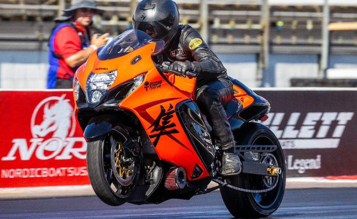 Μια εμφάνιση της ομάδας Moore Mafia του Chris Moore, ενός διάσημου κατασκευαστή μοτοσυκλετών drag race και YouTuber που θα τρέξει την βελτιωμένη με Turbo Hayabusa στην επική πίστα zMAX Dragway, επιδεικνύοντας την εντυπωσιακή απόδοση της Suzuki Hayabusa.