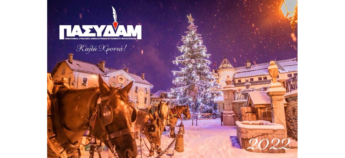 Ο Πανελλήνιος Σύνδεσμος Δημοσιογράφων Αυτοκινήτου Μοτοσυκλέτας με την ευκαιρία αποκάλυψης του λογοτύπου του, σας εύχεται Καλή και Υγιή Χρονιά!