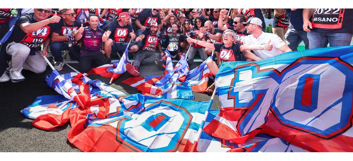Αυτό το μήνυμα ήταν γραμμένο στις μοτοσυκλέτες των Pol Espargaro και Stefan Bradl σήμερα στον αγώνα του Misano. Με αυτόν τον τρόπο η Honda αποφάσισε να τιμήσει τον Andrea Dovizioso, ο οποίος σήμερα ολοκλήρωσε την καριέρα του με το πέσιμο της καρό σημαίας. Μια καριέρα που ξεκίνησε το 2002 (με μια συμμετοχή επίσης το 2001) στο Παγκόσμιο Πρωτάθλημα στην τότε κατηγορία των 125cc.