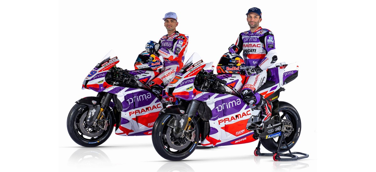 Πραγματοποιώντας την παρουσίασή της στην Ιταλία την Τετάρτη, η Pramac αποκάλυψε ένα σε μεγάλο βαθμό αμετάβλητο κόκκινο, μωβ και λευκό χρώμα που χρησιμοποίησε για πρώτη φορά στα μέσα του 2022 μετά την υπογραφή συμφωνίας συνεργασίας με την Prima.