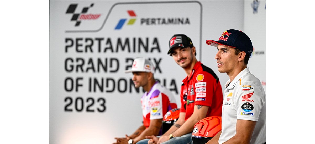 Η πρώτη Συνέντευξη Τύπου είδε τον επικεφαλής του Πρωταθλήματος Bagnaia μαζί με τον Martin και τον Marc Marquez.
