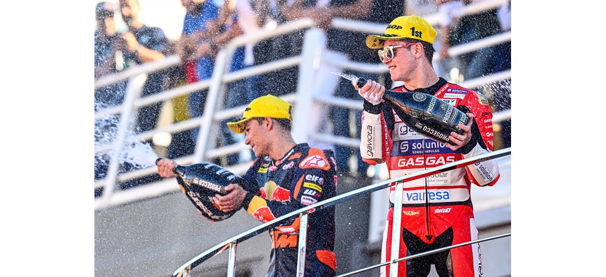 Ο Izan Guevara έδειξε γιατί είναι o Παγκόσμιος Πρωταθλητής Moto3, αρπάζοντας τη νίκη στο Gran Premio Motul de la Comunitat Valenciana από τον Deniz Öncü, παρόλο που βγήκε πίσω από τον Τούρκο αναβάτη στην τελευταία στροφή. Ο Guevara ήταν επικεφαλής σε όλο τον αγώνα μέχρι τα μέσα του τελευταίου γύρου, όπου ο Oncu έκανε την κίνησή του στην όγδοη στροφή και βγήκε πρώτος από την 14, αλλά στη συνέχεια ένα μικρό γλίστρημα του πίσω τροχού έφερε μπροστά τον Guevara για μόλις 0,062 δευτερόλεπτα. Ο Sergio Garcia τερμάτισε δεύτερος στο Πρωτάθλημα ολοκληρώνοντας το βάθρο με μεγάλη διαφορά από τους αναβάτες μπροστά του ή πίσω του.