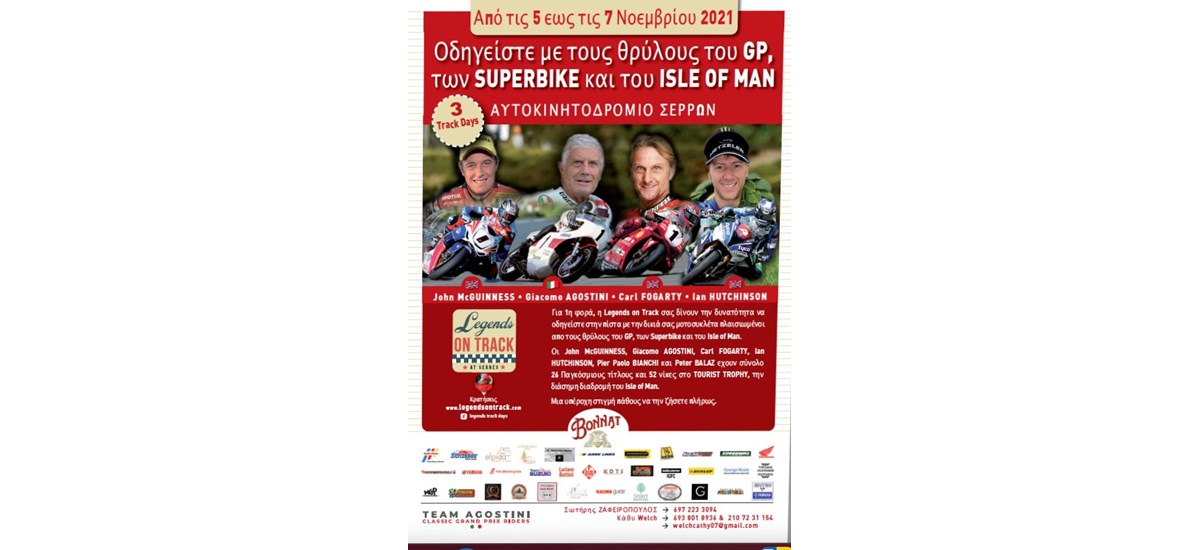 Μια αφίσα που τα λέει όλα για τη δυνατότητα να οδηγήσουμε στις Σέρρες με μεγάλους θρύλους των Αγώνων Μοτοσυκλέτας.