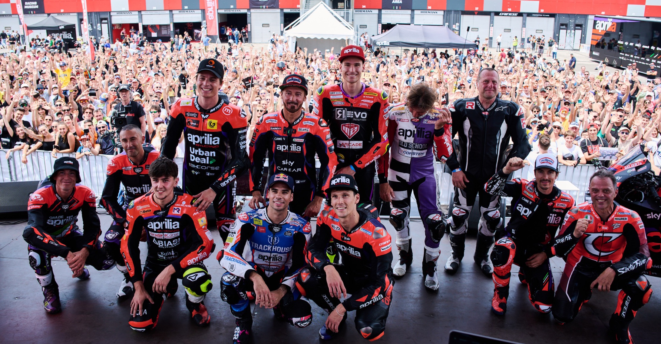 Οι Aprilia RS-GP, πρωταγωνιστές του παγκοσμίου πρωταθλήματος MotoGP, σίγουρα τα πιο πολυαναμενόμενα αστέρια της ημέρας, έκαναν ένα σόου στην πίστα με την παρουσίαση στο κοινό των ομάδων MotoGP, τόσο της ομάδας Aprilia Racing Factory όσο και της αμερικανικής TrackHouse.