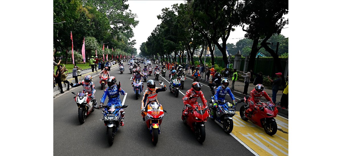 Το Pertamina Grand Prix της Ινδονησίας ξεκίνησε εντυπωσιακά στην πρωτεύουσα της Ινδονησίας, Τζακάρτα, την Τετάρτη, με μια παρέλαση 20 αναβατών που συναντήθηκαν με τον Πρόεδρο, Joko Widodo, και περνούσαν μέσα από την πόλη – μαζί με τον CEO της Dorna Sports Carmelo Ezpeleta και τον Chief Sporting Officer, Carlos Ezpeleta.
